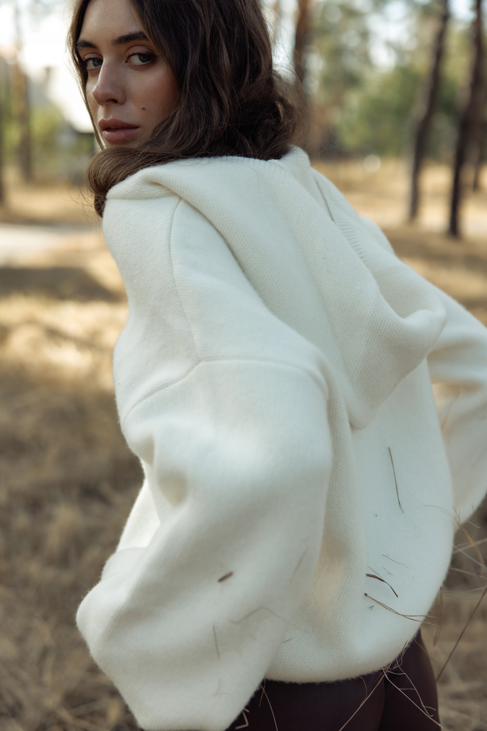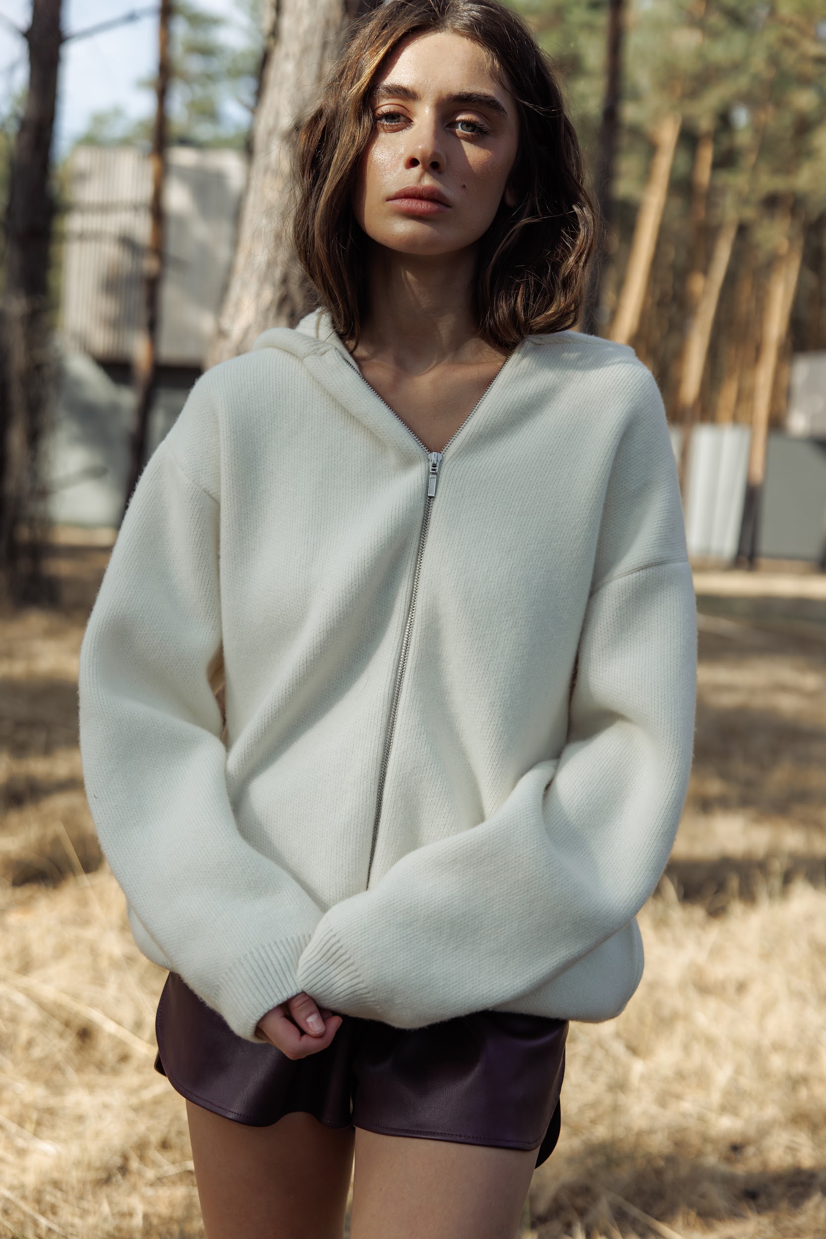Надзвичайно теплий і стильний кардиган із натуральної вовни кольору бордо — ідеальний вибір для прохолодної пори року. Виконаний в актуальному оверсайз крої, він гарантує комфорт і свободу рухів. Модель оснащена зручним капюшоном, блискавкою для легкого застібання та двома практичними кишенями. Насичений бордовий колір додає елегантності та вишуканості вашому образу. Кардиган чудово поєднується з різноманітним гардеробом: від повсякденних джинсів до стильних штанів або лосин. Ідеальний для прогулянок, подорожей та створення затишних образів у холодну погоду.