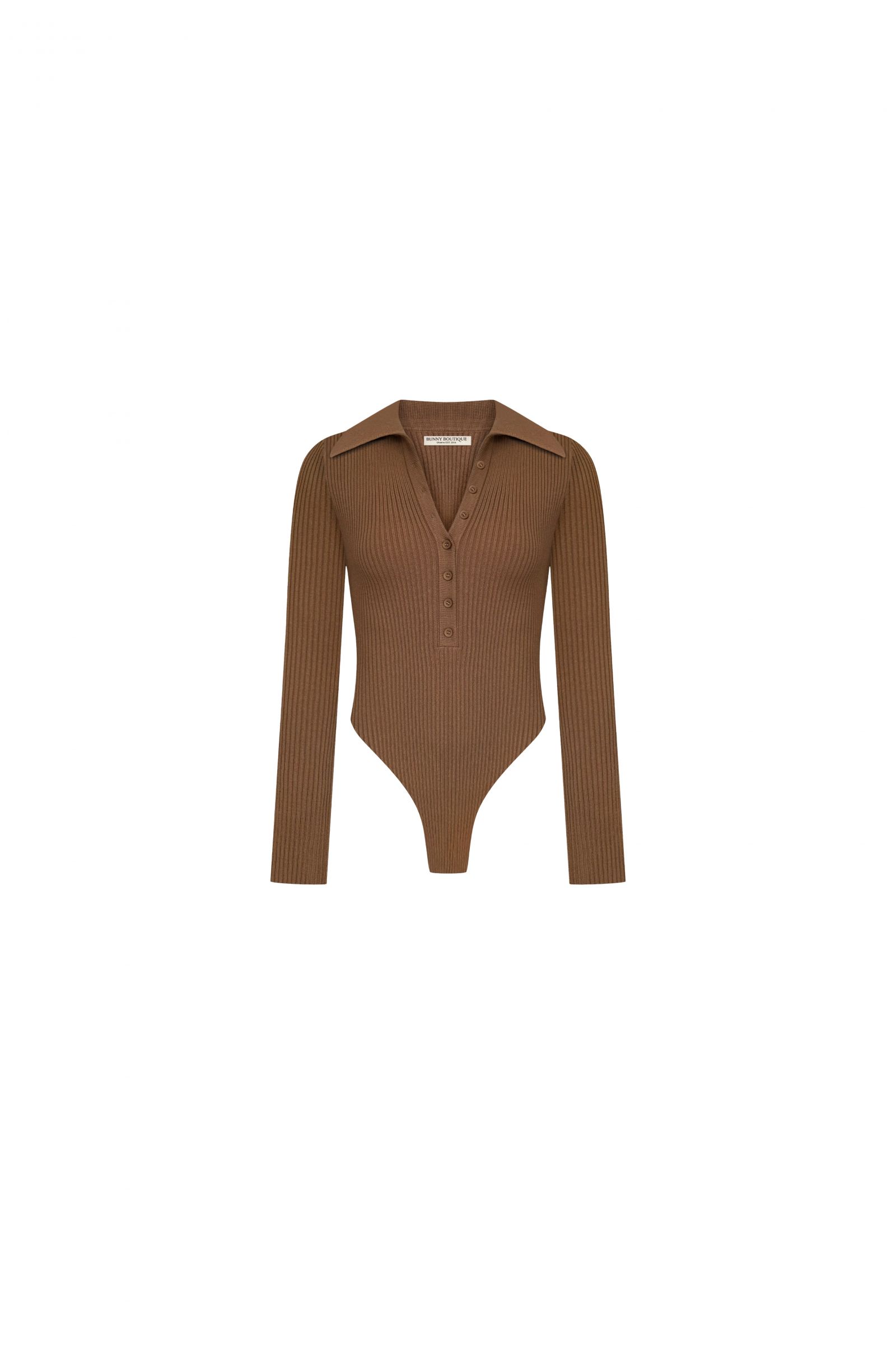 Елегантний боді з м’якого трикотажу - універсальна база для стильних образів на кожен день. Модель має класичний відкладний комір і планку на ґудзиках, що додає вишуканості. Довгий рукав і приталений силует підкреслюють фігуру, створюючи акуратний та жіночний образ. Завдяки боді-формату виріб ідеально лягає по тілу, не вибивається з-під одягу та чудово поєднується з джинсами, брюками або спідницями з високою посадкою.