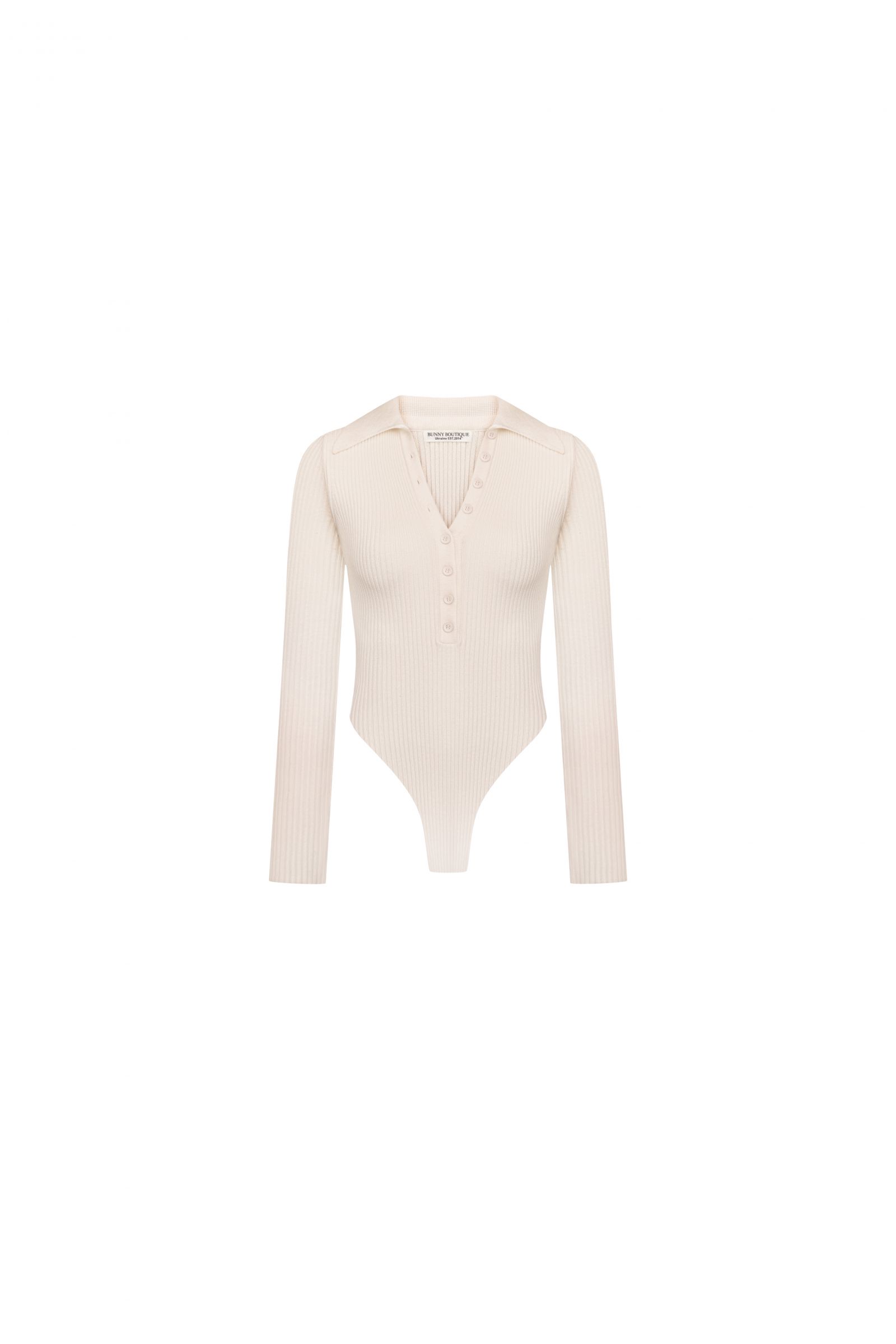 Елегантний боді з м’якого трикотажу - універсальна база для стильних образів на кожен день. Модель має класичний відкладний комір і планку на ґудзиках, що додає вишуканості. Довгий рукав і приталений силует підкреслюють фігуру, створюючи акуратний та жіночний образ. Завдяки боді-формату виріб ідеально лягає по тілу, не вибивається з-під одягу та чудово поєднується з джинсами, брюками або спідницями з високою посадкою.