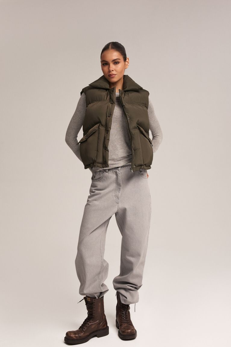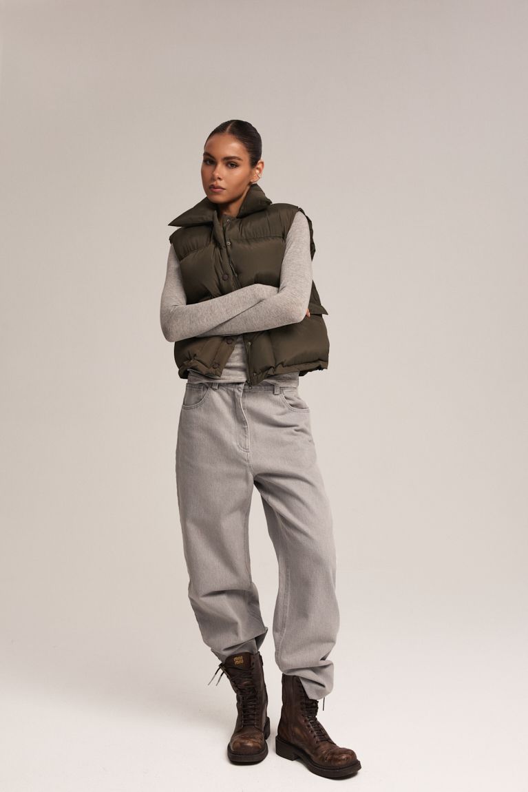 Джинси Avril – це ідеальний вибір для тих, хто цінує стильний та розслаблений образ. Вони виконані в актуальному фасоні із низькою посадкою, що додає образу невимушеності та підкреслює лінію талії. Джинси мають широкий крій, який забезпечує комфорт і свободу рухів, але водночас вони трішки звужуються донизу, створюючи збалансований силует. Така посадка додає образу стильного вигляду, що легко поєднується як з класичними, так і з кежуал речами. Сірий благородний відтінок деніму додає легкості та універсальності, роблячи ці джинси ідеальним варіантом для будь-якого сезону. Вони чудово комбінуються з базовими топами, об’ємними сорочками та спортивним взуттям, дозволяючи створювати як повсякденні, так і більш продумані аутфіти.