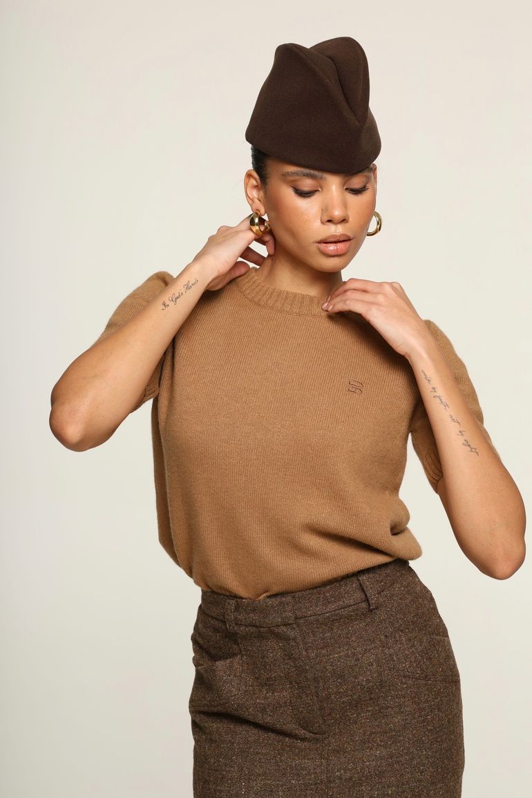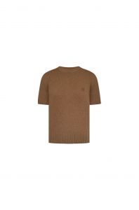 Ця базова футболка — приклад елегантної простоти, яка підкреслює статус та бездоганний смак. Виготовлена з натуральної вовни ягня, вона дарує комфорт, м'якість і тепло, дозволяючи шкірі дихати. Модель має делікатну фактуру в'язки, що надає виробу вишуканого вигляду та робить його універсальним для будь-якого гардероба. Округлий виріз горловини та короткі рукави з м’якими манжетами створюють акуратний, збалансований силует. Ніжний логотип на грудях — лаконічний акцент, який свідчить про увагу до деталей і преміальність. Ідеальна для поєднання як з класичними речами, так і з повсякденним стилем, ця шерстяна футболка стане незамінною базою для стильних осінньо-зимових образів.