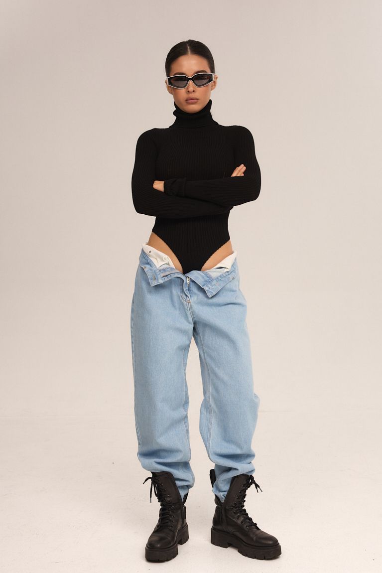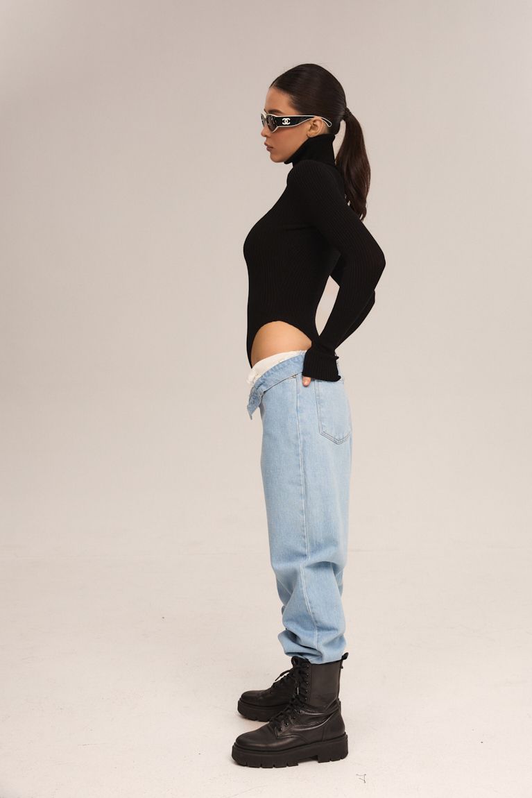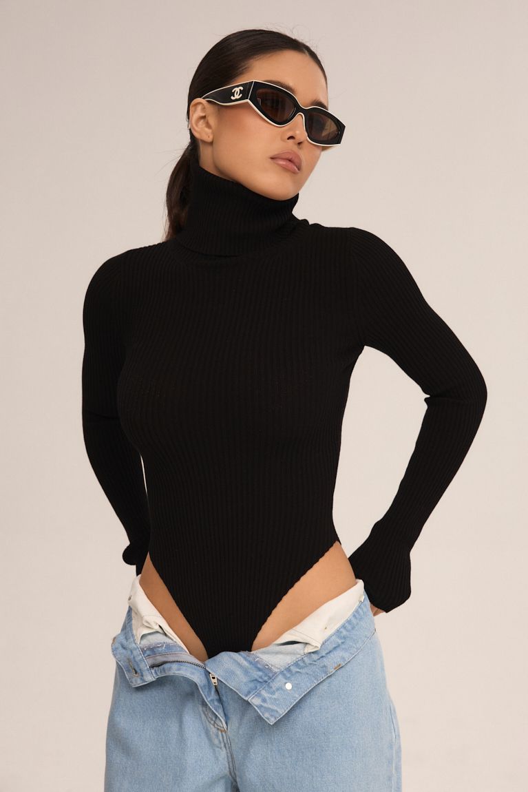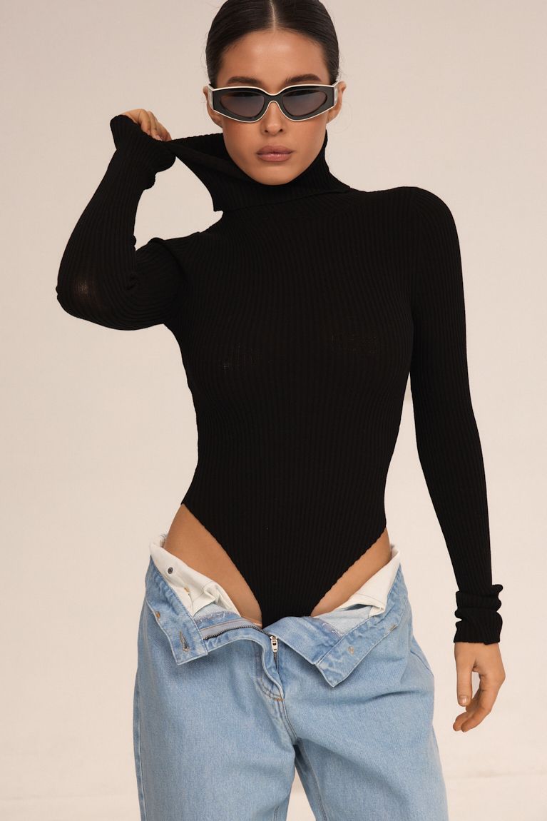 Стильне та універсальне трикотажне боді з довгими рукавами та високою горловиною — ідеальна база для безлічі образів. Виготовлене з еластичного рифленого матеріалу, воно комфортно облягає фігуру, підкреслюючи силует та забезпечуючи зручність упродовж усього дня. Завдяки класичному чорному кольору легко поєднується як з джинсами чи спідницями, так і зі строгими брюками чи жакетами. Ідеальна посадка без заломів під одягом. Базовий елемент гардероба, який стане вашим фаворитом у будь-якому сезоні.