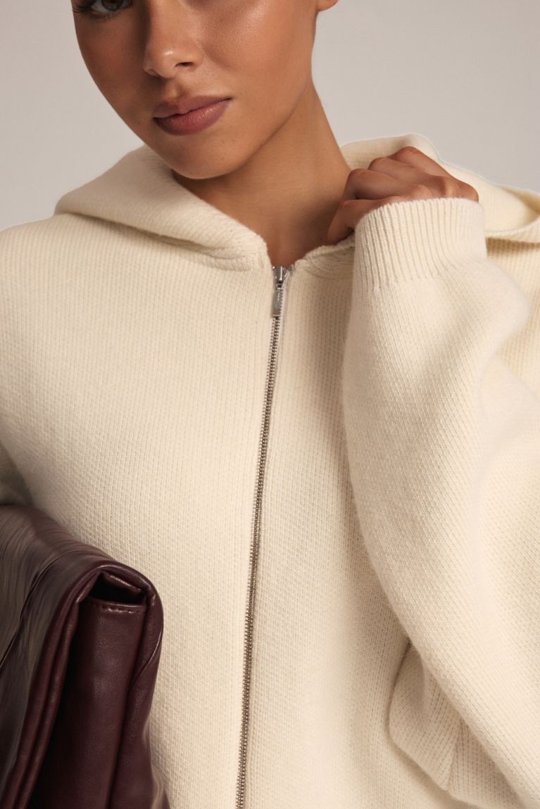 Надзвичайно теплий і стильний кардиган із натуральної вовни — ідеальний вибір для прохолодної пори року. Виконаний в актуальному оверсайз крої, він гарантує комфорт і свободу рухів. Модель оснащена зручним капюшоном, блискавкою для легкого застібання та двома практичними кишенями. Молочний колір додає елегантності та вишуканості вашому образу. Кардиган чудово поєднується з різноманітним гардеробом: від повсякденних джинсів до стильних штанів або лосин. Ідеальний для прогулянок, подорожей та створення затишних образів у холодну погоду.