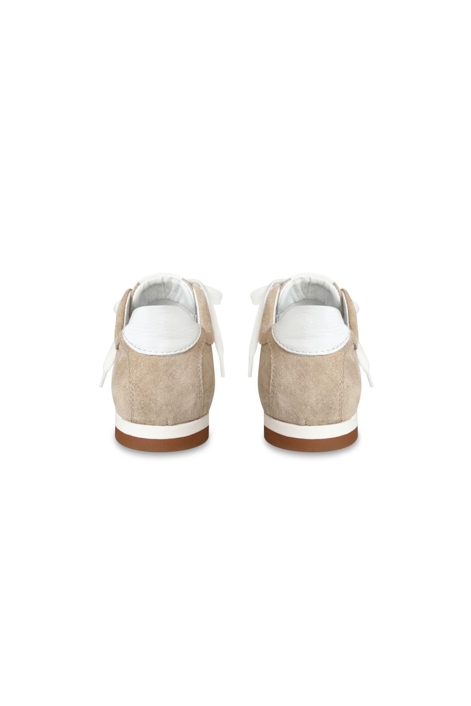Ці стильні кеди - ідеальне поєднання мінімалізму, комфорту та універсальності. Виконані з м’якої замші у світлому бежевому відтінку, вони легко впишуться як у повсякденні, так і в більш стримані образи. Лаконічний дизайн підкреслюється акуратною перфорацією з боків і чистими лініями, а контрастні білі шнурки додають свіжості та сучасного вигляду. Ці кеди стануть чудовим вибором для тих, хто цінує якість, зручність і стриманий стиль у кожній деталі.