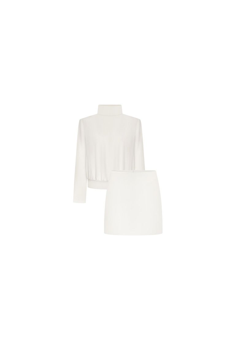 Костюм Shoulders створений для тих, хто цінує мінімалізм, вишуканість і бездоганний силует. Комплект складається з м’якої блузи з високою горловиною та лаконічної спідниці, що разом формують естетично збалансований вечірній образ. Висока стійка горловина додає образу святкової виразності та сучасного характеру. Класичний міні-крій підкреслює ноги та додає образу святкової сміливості. Щільна, еластична тканина гарно облягає фігуру й тримає форму. Цей костюм створений для новорічних вечірок, стильних зустрічей і особливих моментів, коли хочеться виглядати по-справжньому бездоганно.