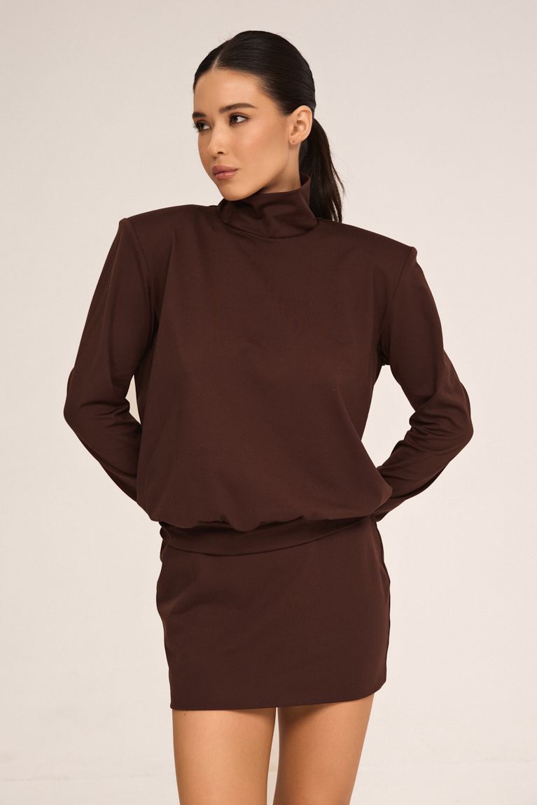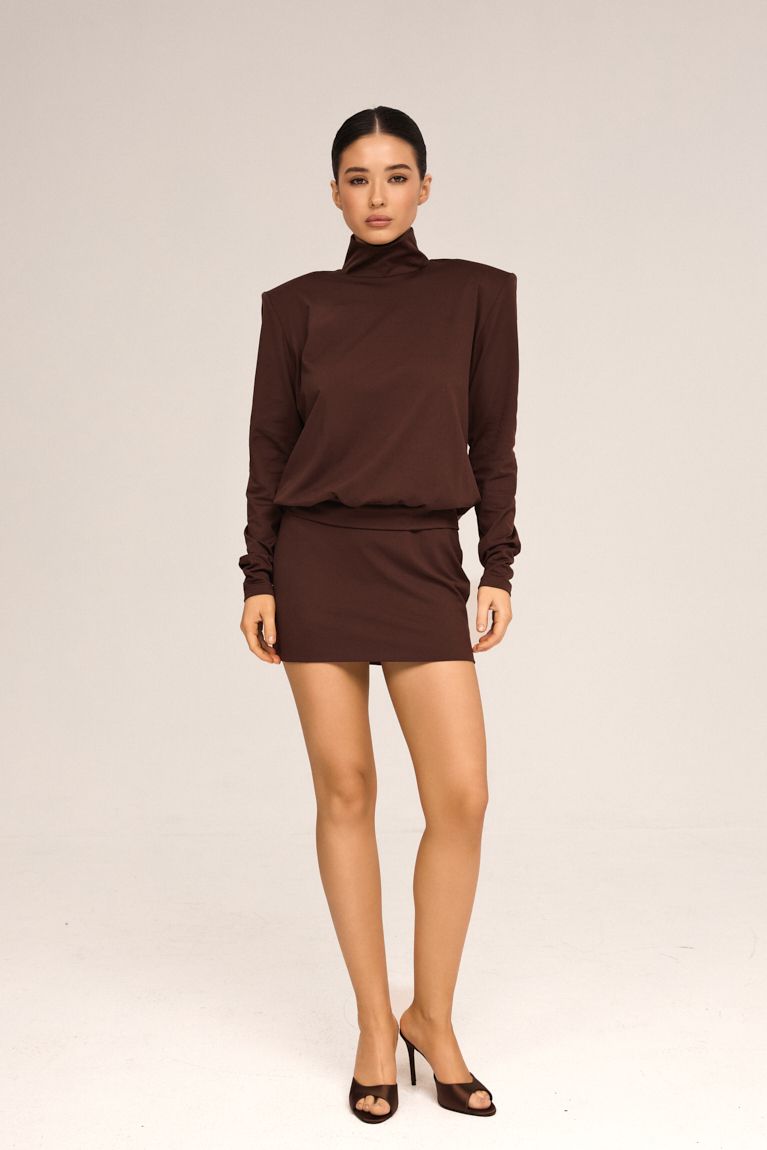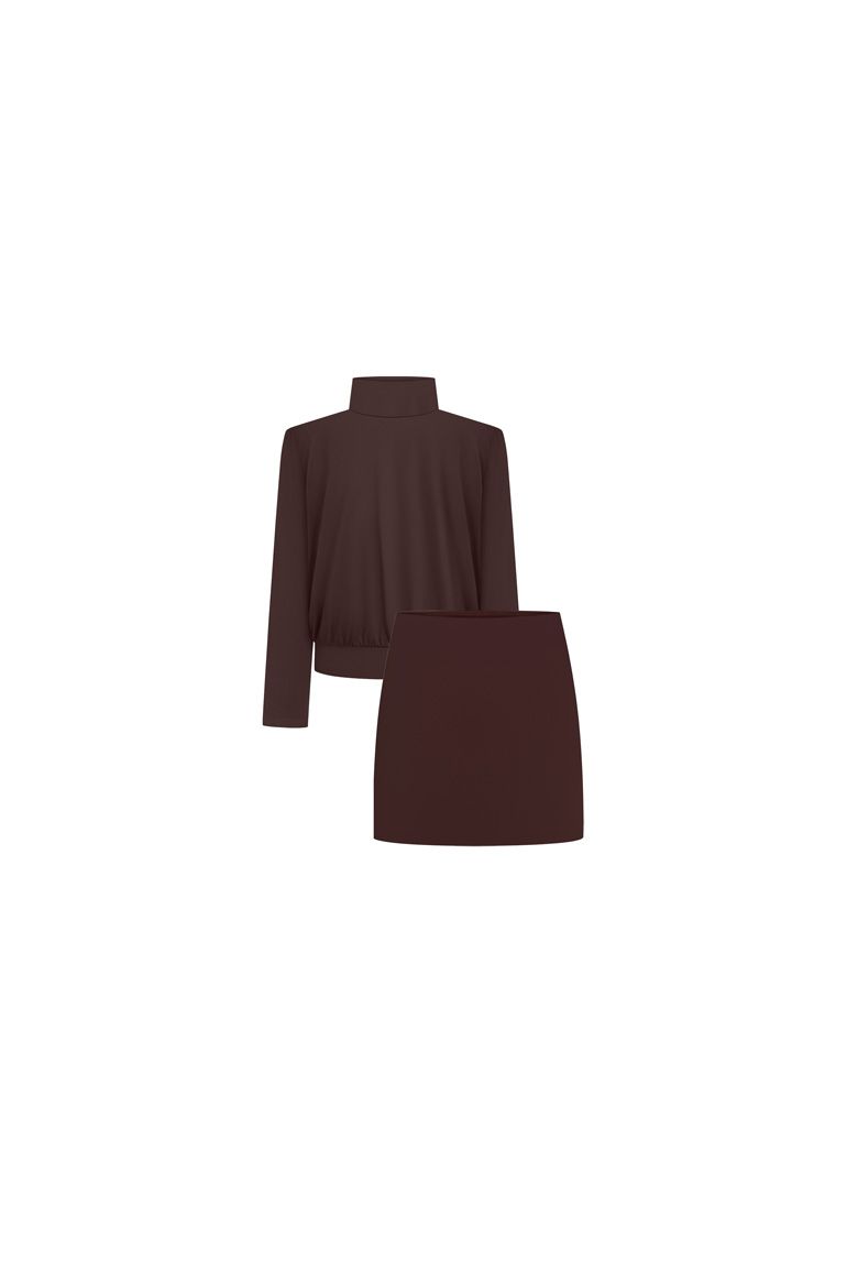 Костюм Shoulders створений для тих, хто цінує мінімалізм, вишуканість і бездоганний силует. Комплект складається з м’якої блузи з високою горловиною та лаконічної спідниці, що разом формують естетично збалансований вечірній образ. Висока стійка горловина додає образу святкової виразності та сучасного характеру. Класичний міні-крій підкреслює ноги та додає образу святкової сміливості. Щільна, еластична тканина гарно облягає фігуру й тримає форму. Цей костюм створений для новорічних вечірок, стильних зустрічей і особливих моментів, коли хочеться виглядати по-справжньому бездоганно.