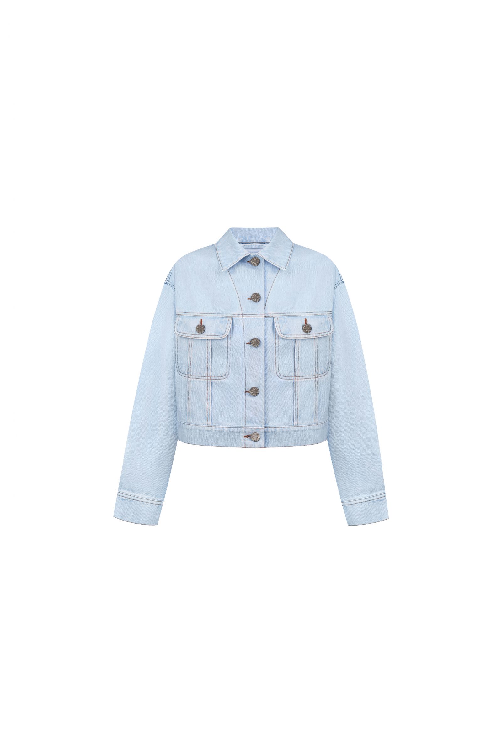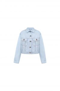 Стильна укорочена джинсова куртка у блакитному відтінку - ідеальний варіант для створення легких та актуальних образів. Завдяки лаконічному крою та універсальному дизайну вона легко поєднується як із базовими речами, так і з більш трендовими аутфітами. Модель має вільну посадку, спущену лінію плеча та укорочену довжину, що красиво підкреслює силует.