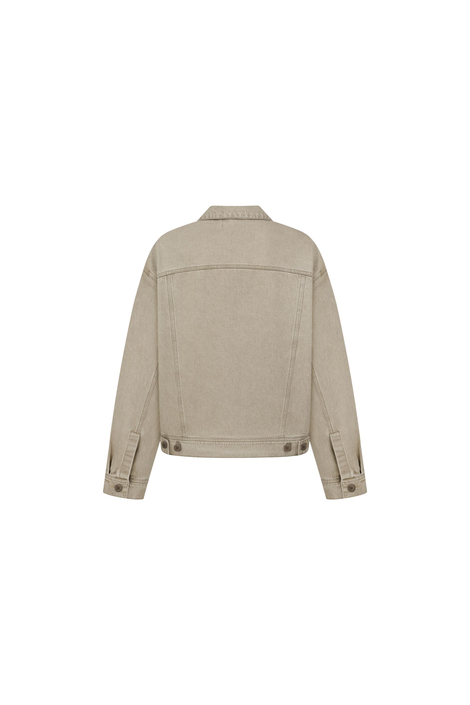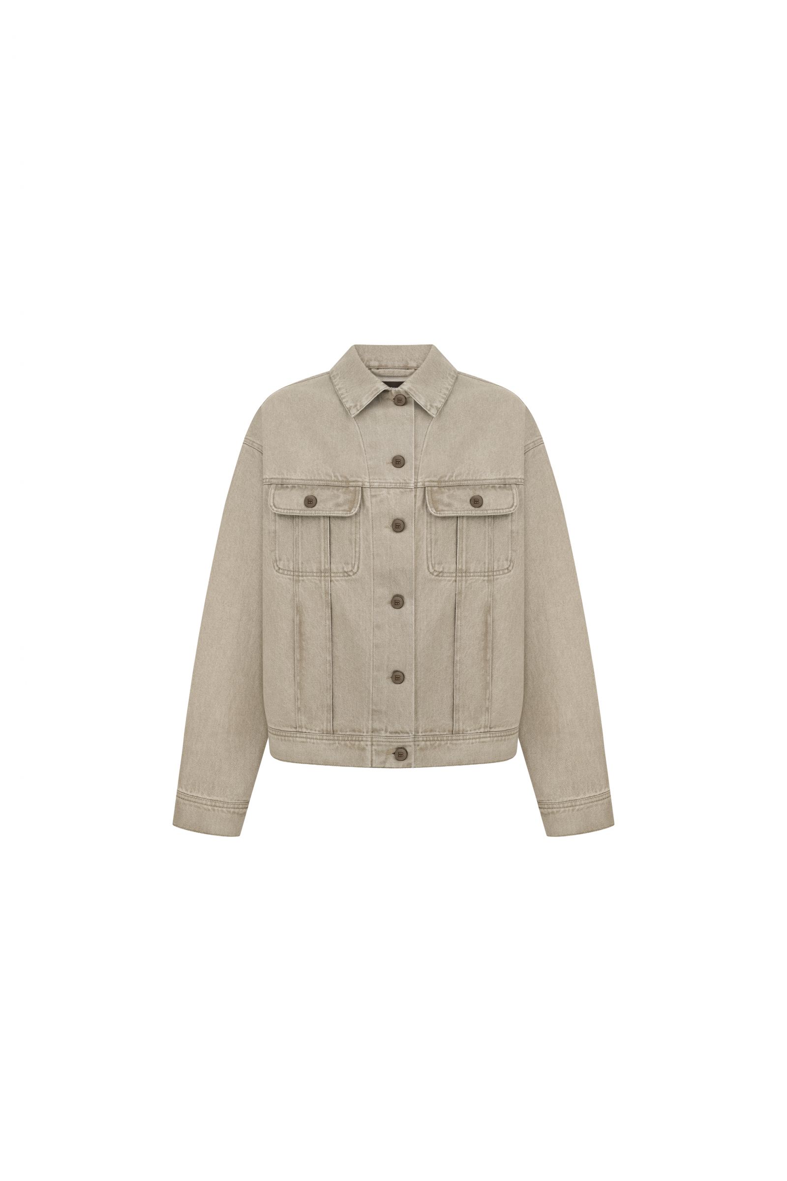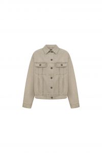 Стильна куртка із щільного деніму - універсальна річ для створення сучасних повсякденних образів. Модель виконана в оливковому кольорі, який легко поєднується з базовими речами гардеробу та підходить для будь-якого сезону. Куртка має вільний крій, що забезпечує комфорт та свободу рухів. Класичний відкладний комір, застібка на ґудзики та накладні кишені на грудях додають виробу практичності та підкреслюють його стильний денім-характер. Подовжені рукави з манжетами формують розслаблений силует і роблять модель ідеальною для щоденного носіння.