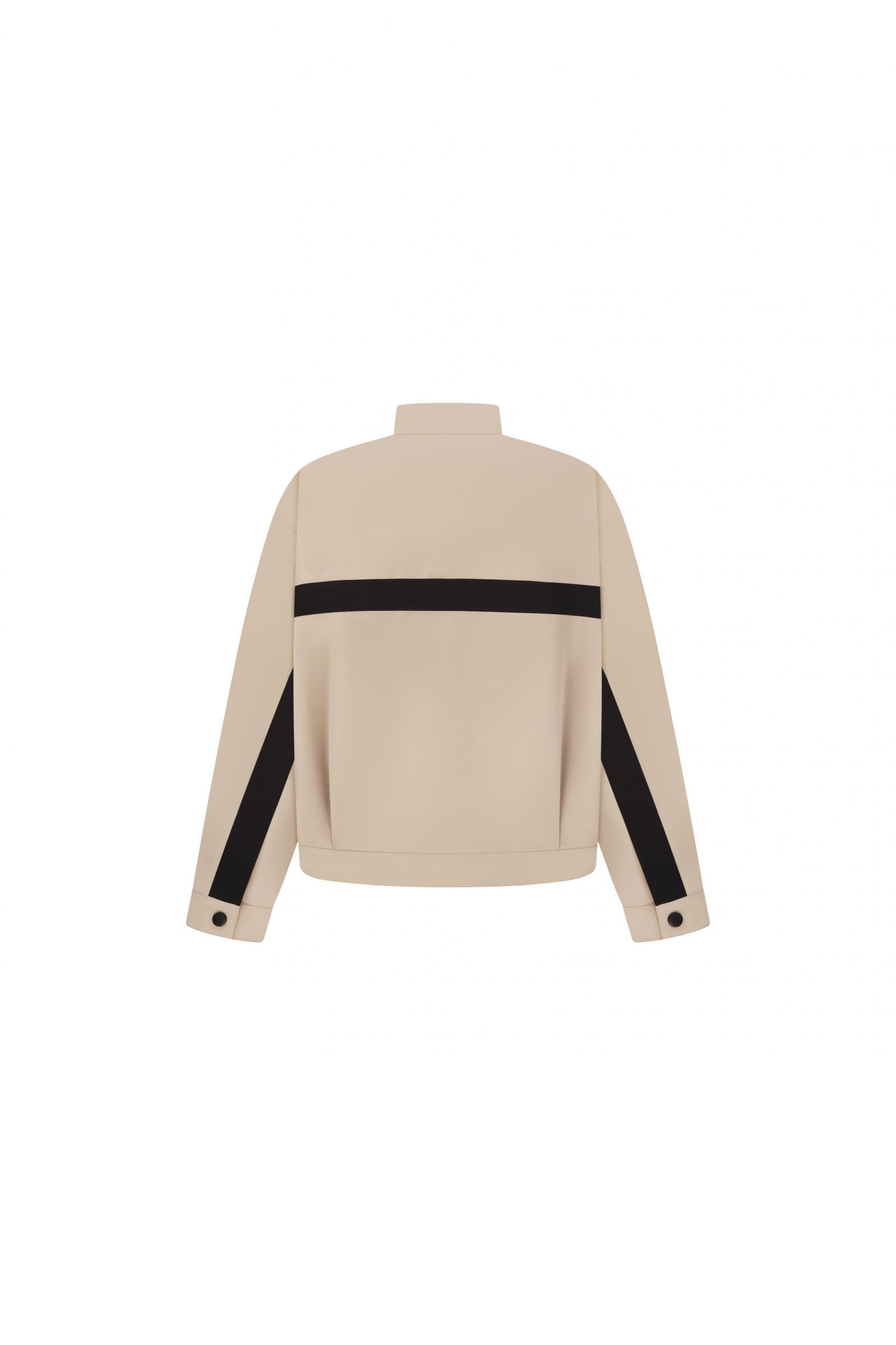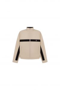 Стильна та універсальна куртка, що поєднує мінімалістичний дизайн і спортивний характер. Модель виконана у трендовому бежевому кольорі з контрастною чорною смугою по лінії грудей, що додає образу динаміки та сучасності. Акуратна вишивка-логотип підкреслює якість і продуманість деталей. Завдяки вільному крою куртка комфортно сідає по фігурі, не сковує рухів і чудово поєднується як зі спортивними легінсами, так і з джинсами. Комір-стійка захищає від вітру, а застібка-блискавка забезпечує зручність у носінні.