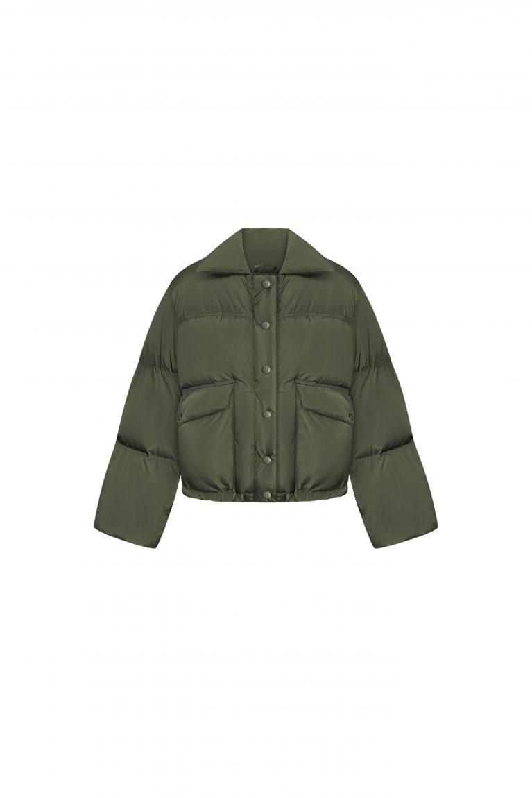 Стильна та функціональна куртка - ідеальний вибір на зиму. Модель має об’ємний силует і продуманий дизайн, що забезпечує максимальний комфорт та захист від прохолоди. Високий комір-стійка захищає від вітру та створює акуратний силует. Комір тримає форму, додаючи пуферу стильного вигляду. Застібка на кнопки в тон виробу підкреслює цілісність дизайну. Об’ємні накладні кишені з клапанами - функціональні та місткі. Низ м’яко прилягає до тіла, забезпечуючи кращу теплоізоляцію та більш охайний вигляд. Матеріал із легким матовим блиском. Тканина стійка до зношування. Пуфер чудово підходить для прогулянок, подорожей або повсякденних міських образів. Її легко поєднувати зі світшотами, худі чи трикотажними лонгслівам - універсальний елемент гардеробу, який додає стилю і комфорту.