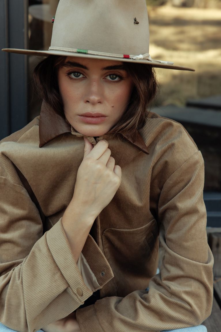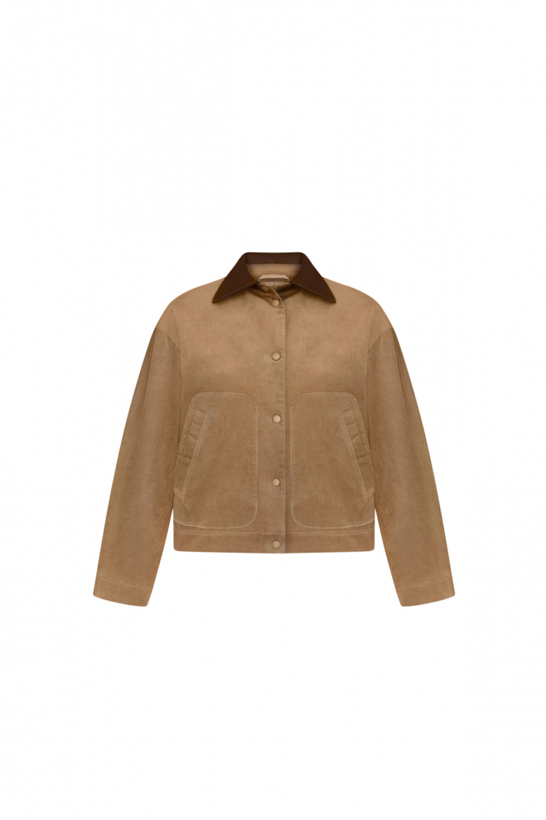 Куртка виконана з вельвету високої якості, з акцентним комірцем з еко-шкіри. На куртці також є ді великі кишені накладні по переду. Рукав спущений.