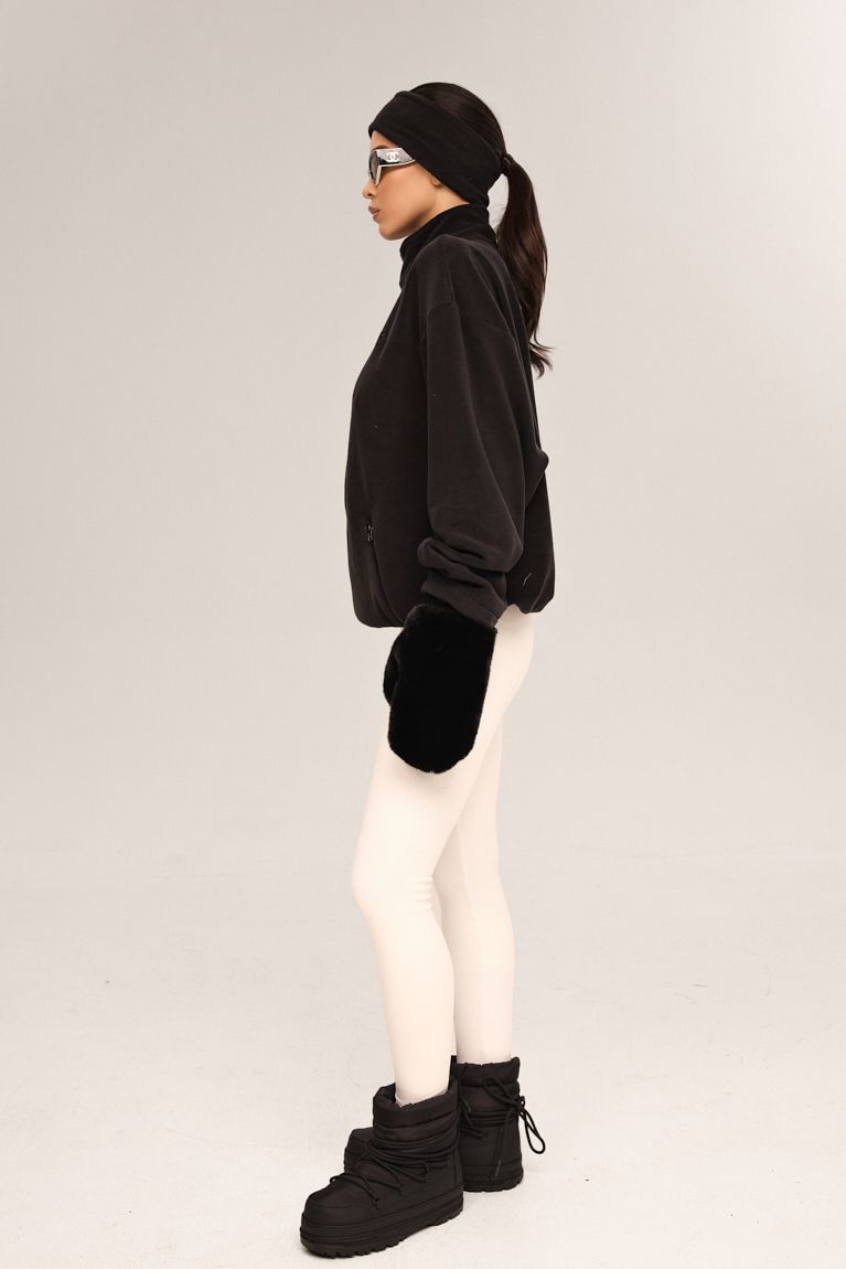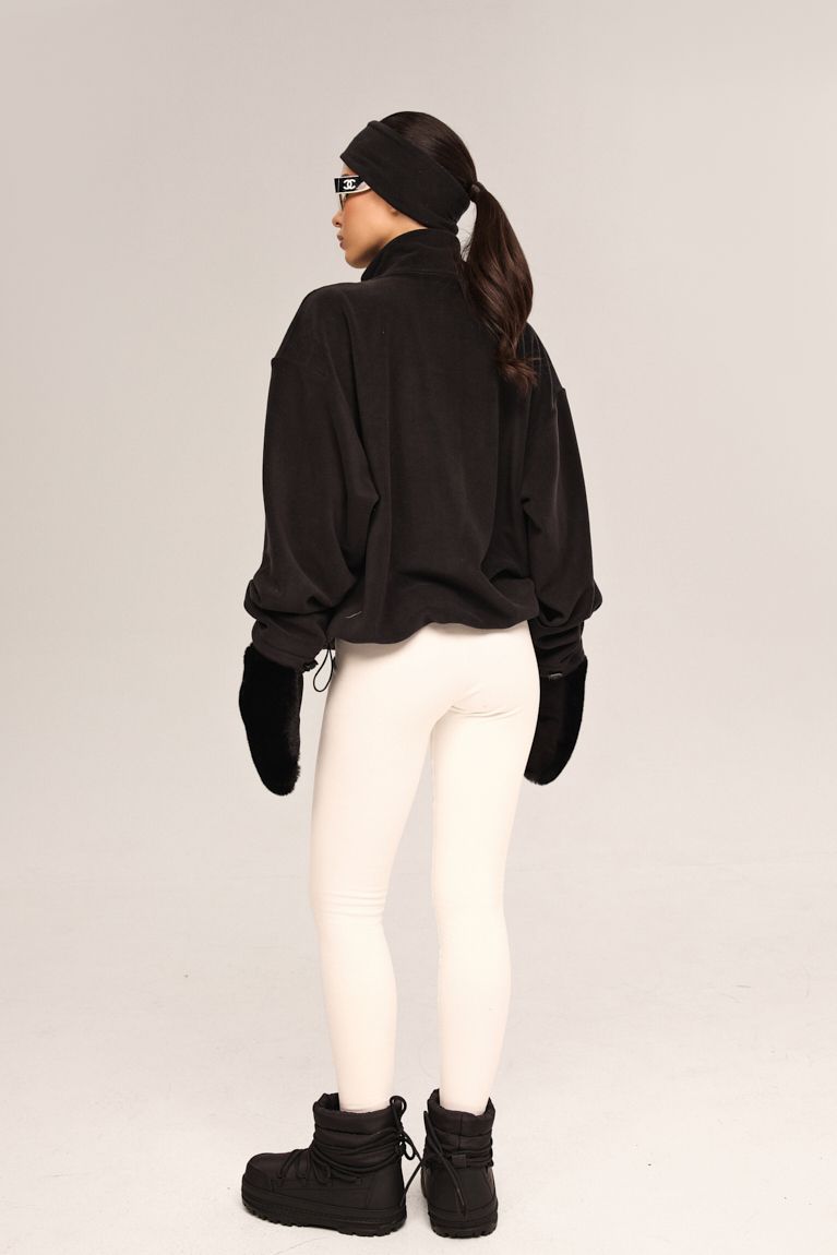 Теплі флісові лосини молочного кольору представлені на високій посадці - це ідеальний вибір для холодної пори року. Завдяки м’якому флісу з внутрішньої сторони вони забезпечують максимальний комфорт і зберігають тепло навіть у мороз. Висока посадка підкреслює талію та додає зручності під час носіння. Чудово підходять як для активного відпочинку, так і для повсякденного використання. Лосини легко комбінуються з різними образами та гарантують стильний вигляд
