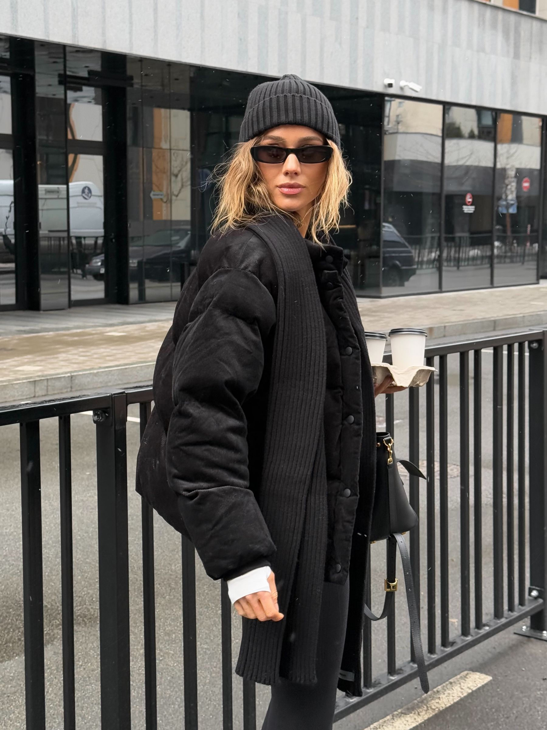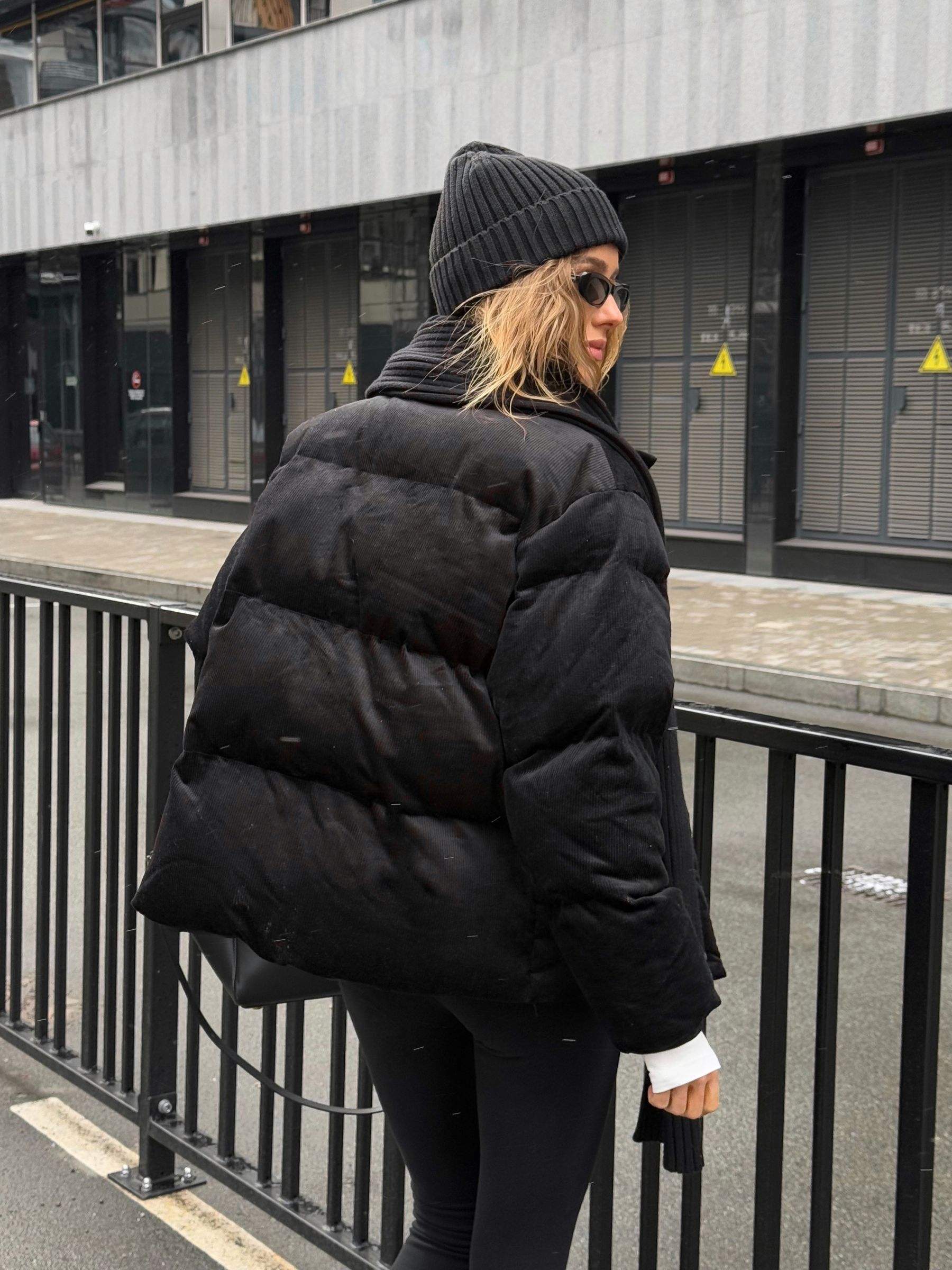 Стильний та теплий акцент у вашому зимовому гардеробі. Цей об’ємний пуфер виконаний із м’якого вельвету, що додає йому унікальної текстури та преміального вигляду. Матеріал щільний вельвет з матовим ефектом. Оверсайз, з широкими рукавами та спущеною лінією плеча. Застібається на кнопки для зручності та мінімалістичного дизайну. Високий комір для додаткового захисту від вітру, еластичні манжети для збереження тепла. Універсальний чорний колір підкреслює лаконічність і легко поєднується з будь-якими луками. Цей пуховик створений для тих, хто цінує комфорт, тепло і сучасний міський стиль. Ідеальний вибір як для повсякденних образів, так і для поєднання зі спортивними або більш вишуканими речами.