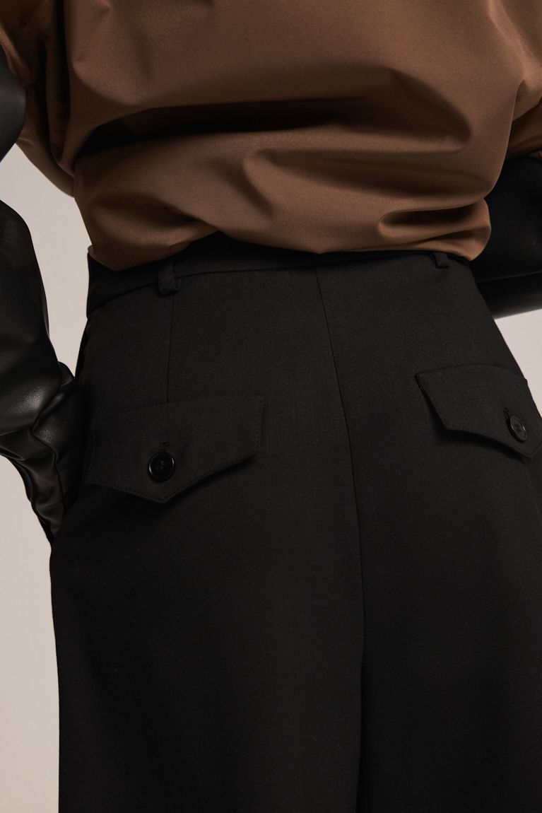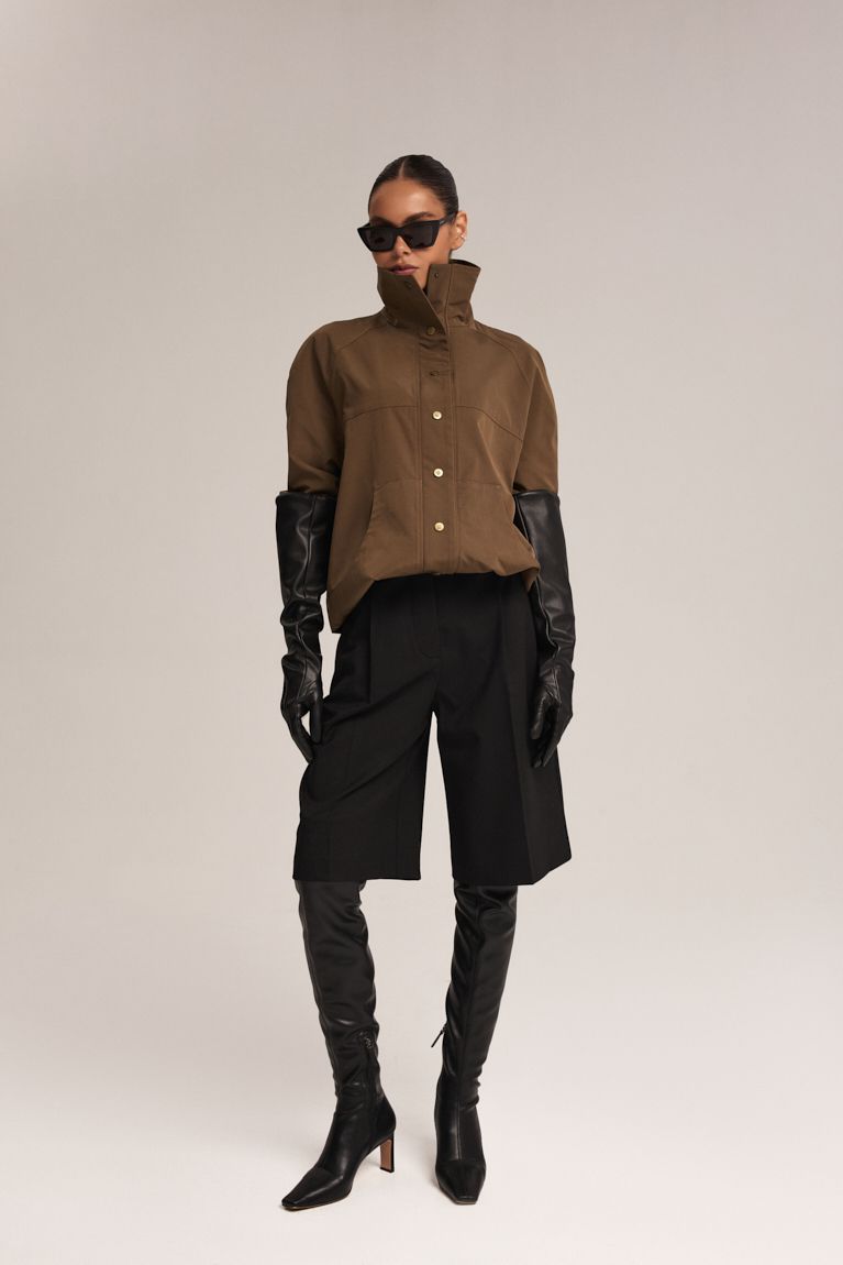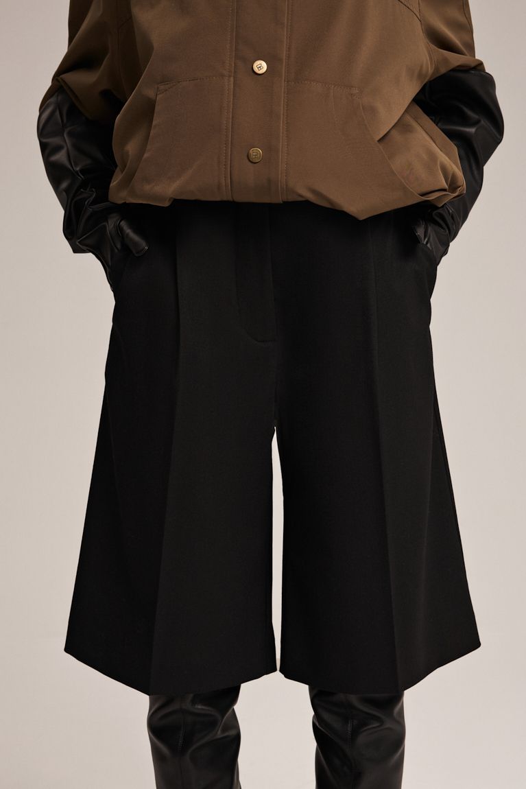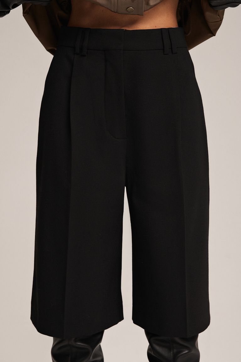 Стильні шорти-бермуди з лаконічним кроєм — ідеальний баланс між комфортом та елегантністю. Модель виконана з щільної костюмної тканини, яка тримає форму та додає образу структури. Висока посадка та м’які складки спереду візуально подовжують силует і підкреслюють талію. Бермуди мають глибокі бокові кишені, акуратну застібку на блискавку та гачок, а також чітко окреслені стрілки, що надають виробу класичного характеру. Завдяки довжині до коліна ці шорти легко інтегруються як у стриманий офісний лук, так і в сучасні кежуал-комбінації. Поєднуйте з м’якими трикотажними светрами, об’ємними піджаками або сорочками — шорти-бермуди стануть універсальною базою вашого гардероба.