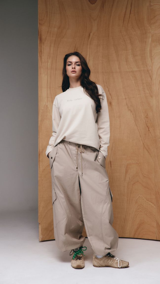 Штани Borneo створені для тих, хто цінує комфорт і стиль у кожній деталі. Матеріал легкий і приємний на дотик, забезпечує зручність у повсякденному носінні. Вільний крій з еластичним поясом та регульованим шнурком для максимальної адаптації до фігури. Об’ємні накладні кишені на боках додають практичності та акцентують увагу на сучасному стилі карго. Низ штанин зібраний на резинку, що дозволяє зручно комбінувати їх з кросівками чи масивним взуттям, а також присутні фіксатори, що дозволяють носити. Декоративні елементи: контрастна строчка та оригінальні клапани кишень підкреслюють індивідуальність виробу. Ці штани ідеально підійдуть як для повсякденних образів у місті, так і для подорожей чи активного відпочинку.