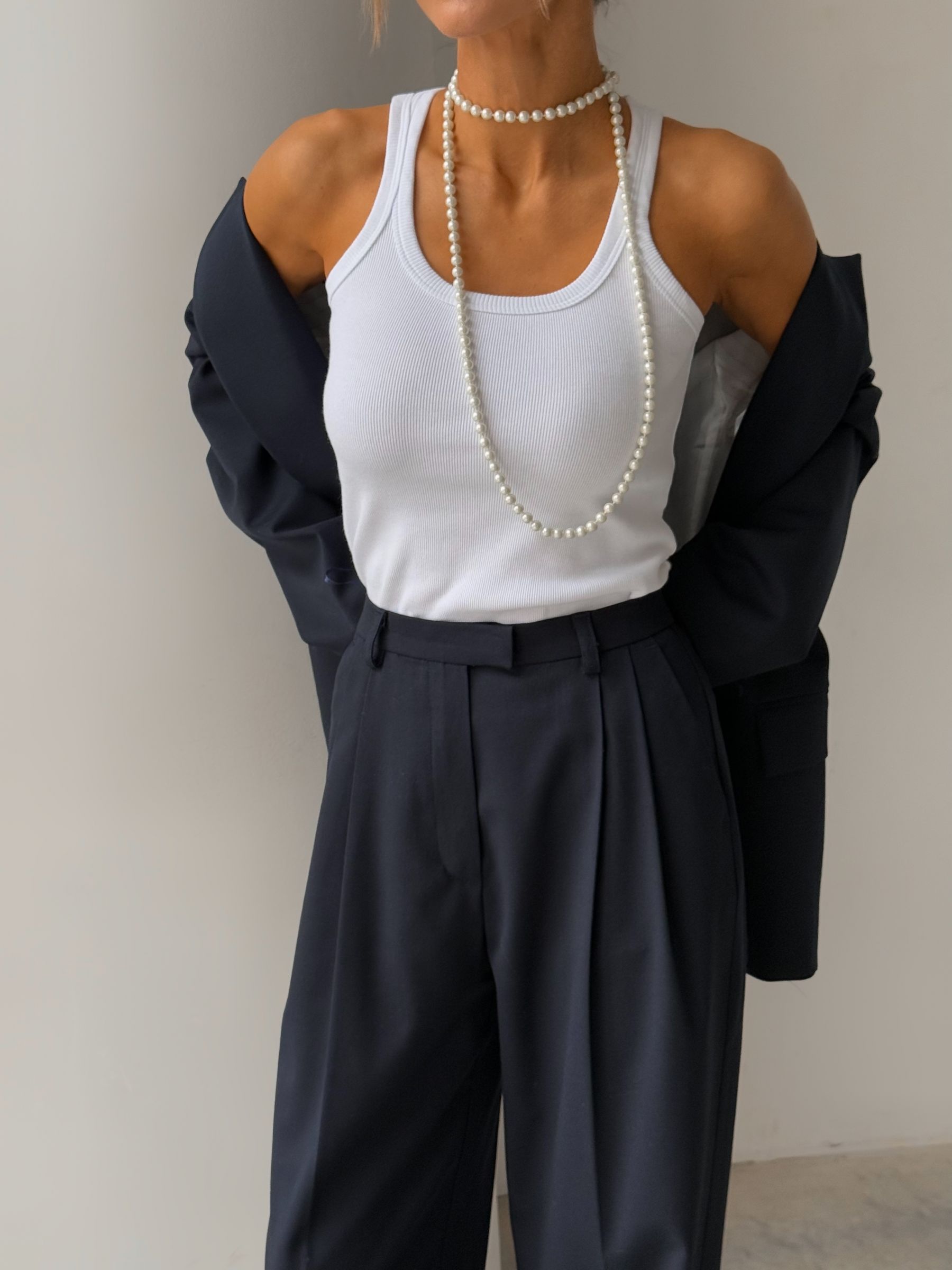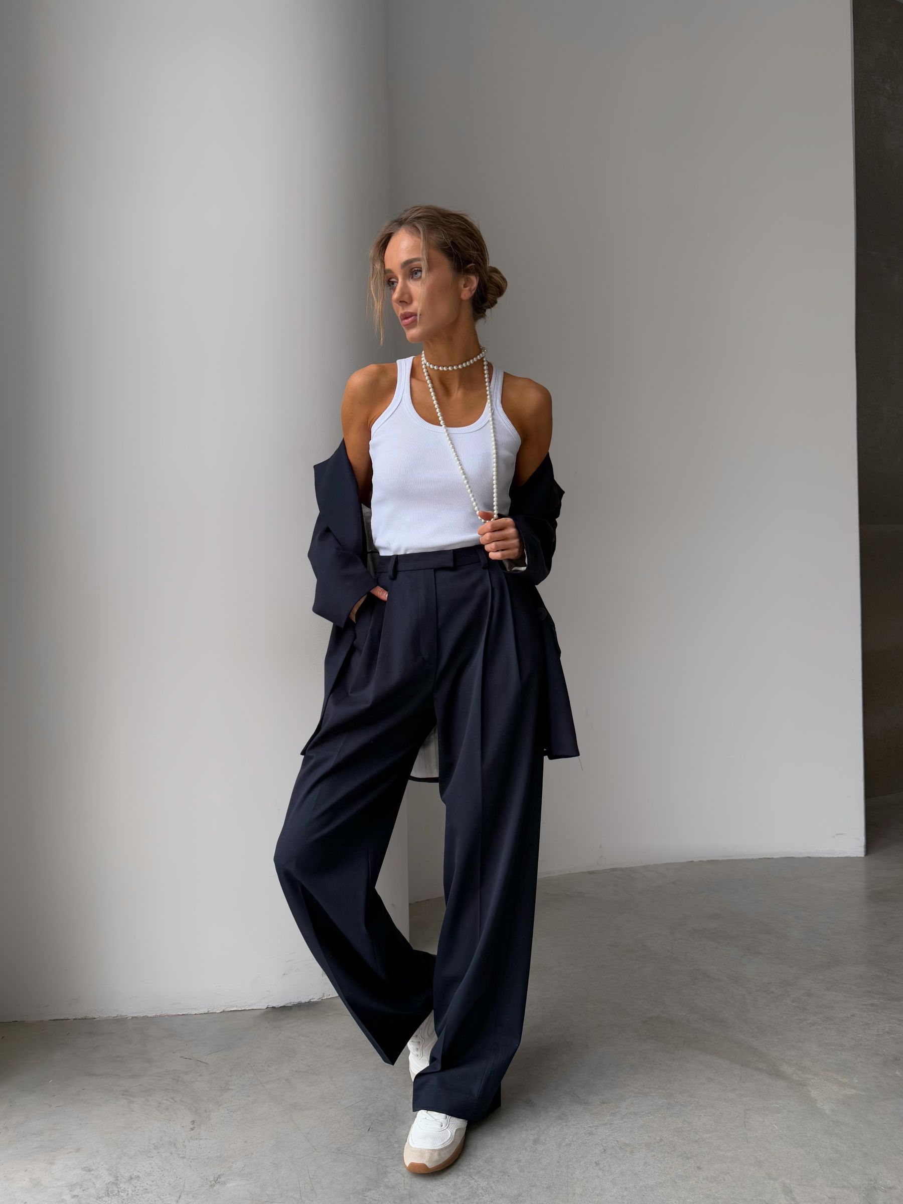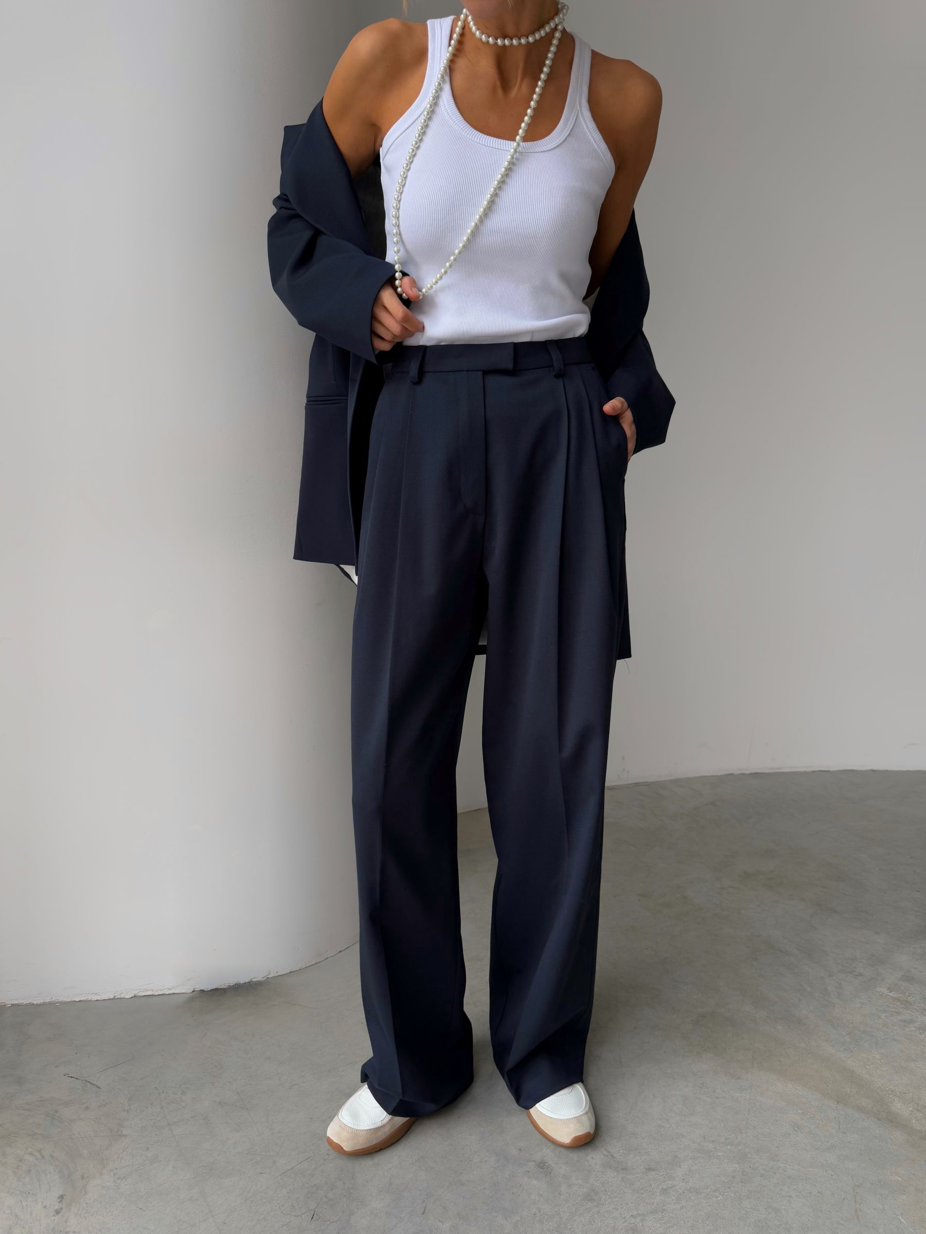 Штани палаццо в насиченому темно-синьому кольорі - це елегантний вибір для створення стильного та комфортного образу. Вони забезпечують тепло, що особливо актуально в холодну пору року. Широкий крій та завищена талія підкреслюють силует і додають образу легкості та вишуканості. Ці штани чудово поєднуються як з класичними сорочками, так і з об’ємними светрами, дозволяючи створювати безліч стильних комбінацій для будь-якого випадку.