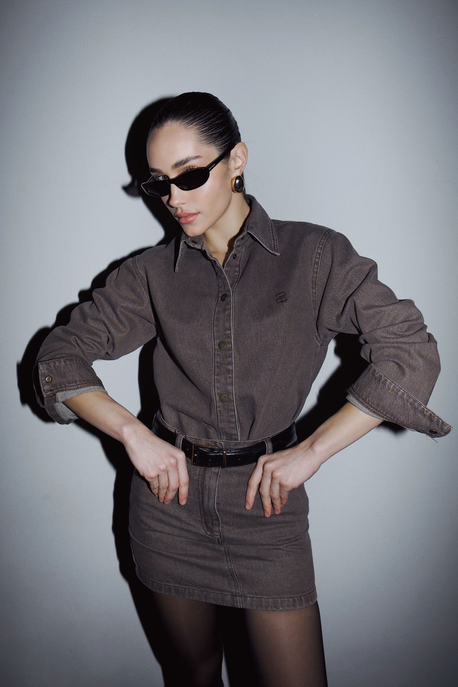 Стильна сорочка з щільного деніму стане універсальною основою гардероба. Модель виконана у трендовому коричневому відтінку, що додає образу характеру та сучасності. Класичний відкладний комір і застібка на ґудзики підкреслюють лаконічний дизайн. Сорочку можна носити як самостійний елемент або як легку куртку поверх футболки чи топа.