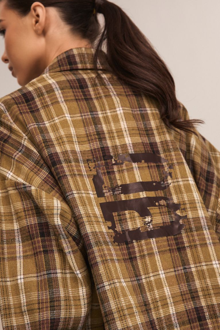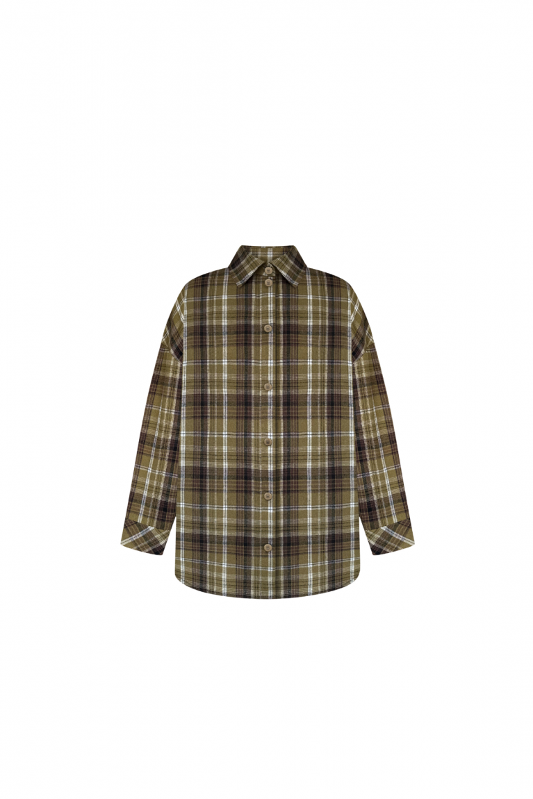 Стильна та універсальна сорочка в кольорі хакі - ідеальне доповнення до будь-якого гардероба. Виконана у модному оверсайз крої, вона забезпечує комфорт і свободу рухів. Модель застібається на кнопки з брендуванням та має на спині логотип бренду. Чудово поєднується як із джинсами, так і зі шкіряними брюками, додаючи образу нотку невимушеності й стилю. Рекомендується для створення casual образів на кожен день або стильних вечірніх луків.