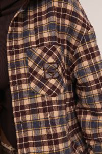 Картата сорочка вільного крою поєднує комфорт і трендовий міський дизайн. Модель виконана з м'якої тканини, приємної до тіла. Особливостями моделі є: oversize крій, контрастний комір та накладна грудна кишеня. Всередині - утеплена стьобана підкладка, що робить її теплішою та комфортною для прохолодної погоди.
