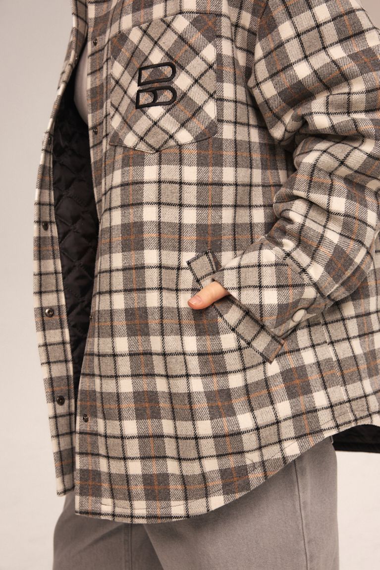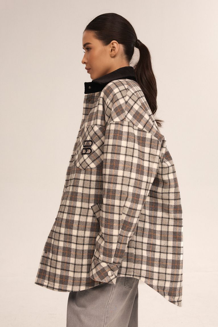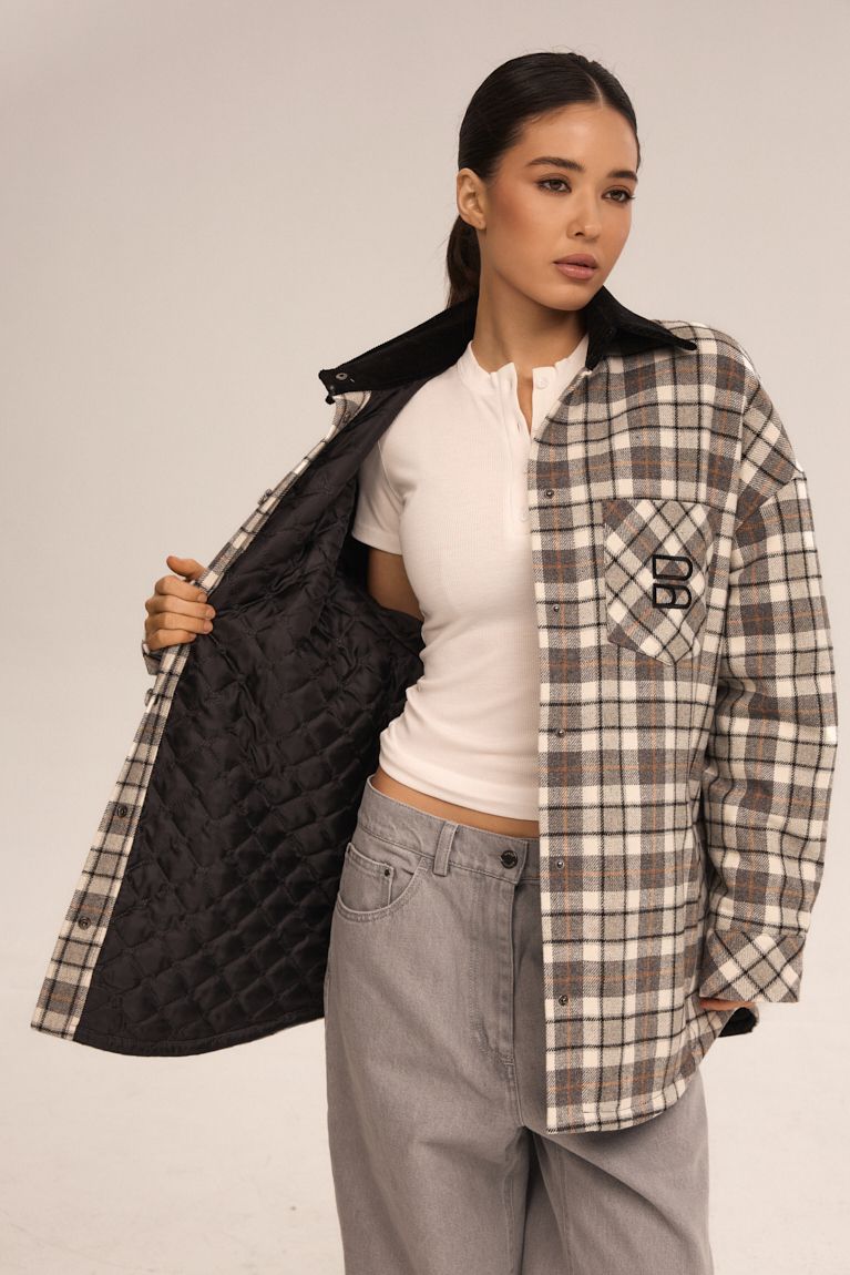 Картата сорочка вільного крою поєднує комфорт і трендовий міський дизайн. Модель виконана з м'якої тканини, приємної до тіла. Особливостями моделі є: oversize крій, контрастний комір та накладна грудна кишеня. Всередині - утеплена стьобана підкладка, що робить її теплішою та комфортною для прохолодної погоди.