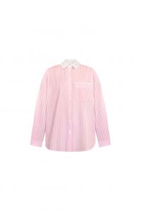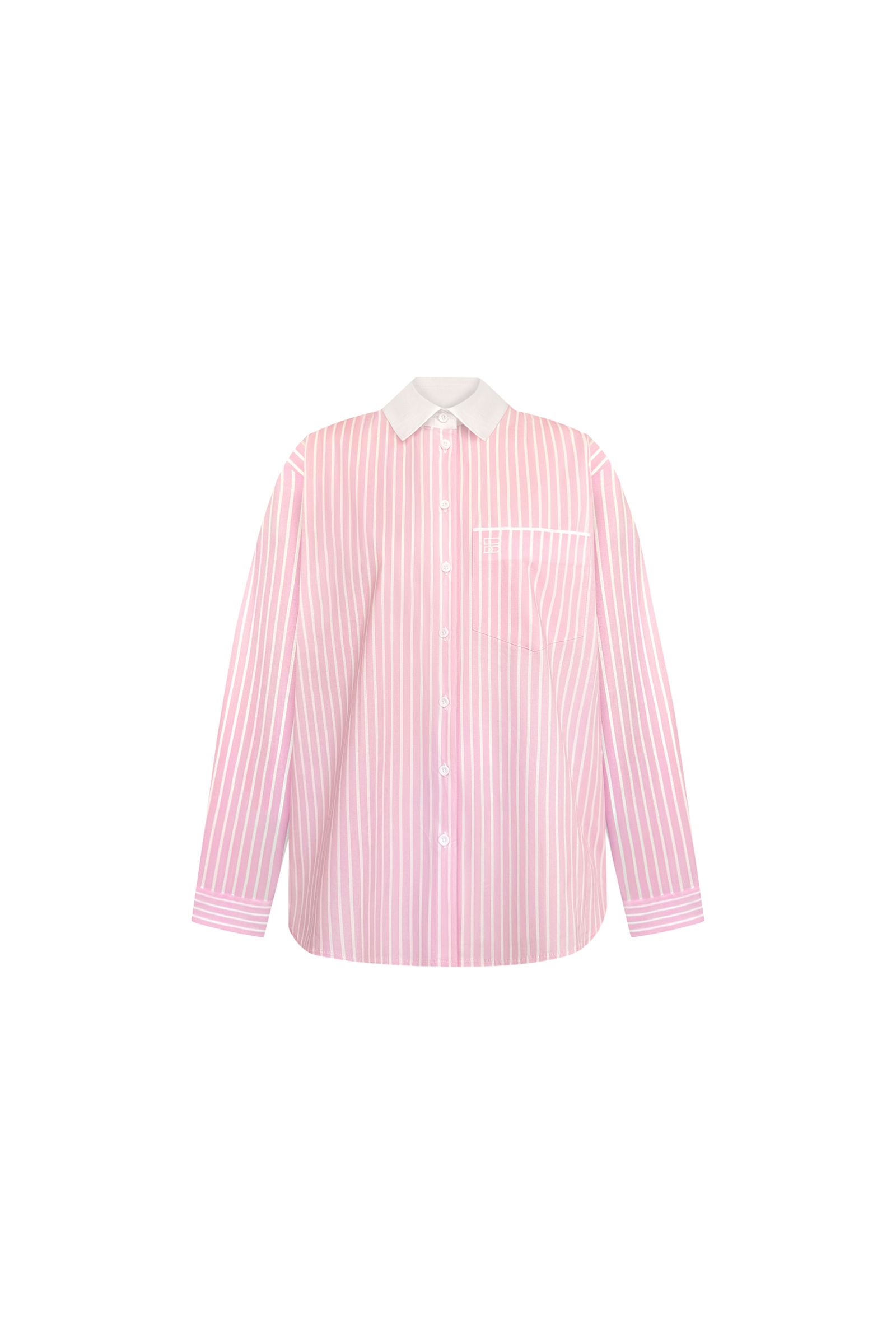 Вишукана жіноча сорочка, що поєднує класичну елегантність та сучасний стиль. Виконана з легкої тканини у світло-рожевому кольорі з вертикальними білими смужками, вона візуально подовжує силует і надає образу легкості. Контрастний білий класичний комірець, який додає сорочці формального шарму. Гудзики в тон, акуратно розміщені по центру. Нагрудна кишеня з декоративною білою лінією, що додає графічного акценту. Вільний крій - ідеально підходить для комфортного щоденного носіння або офісного образу. Укорочена довжина з округленим низом для сучасного силуету. Ця сорочка стане стильним акцентом у вашому гардеробі - її легко поєднувати як з джинсами для кежуал-луку, так і з класичними брюками чи спідницею для ділового стилю.