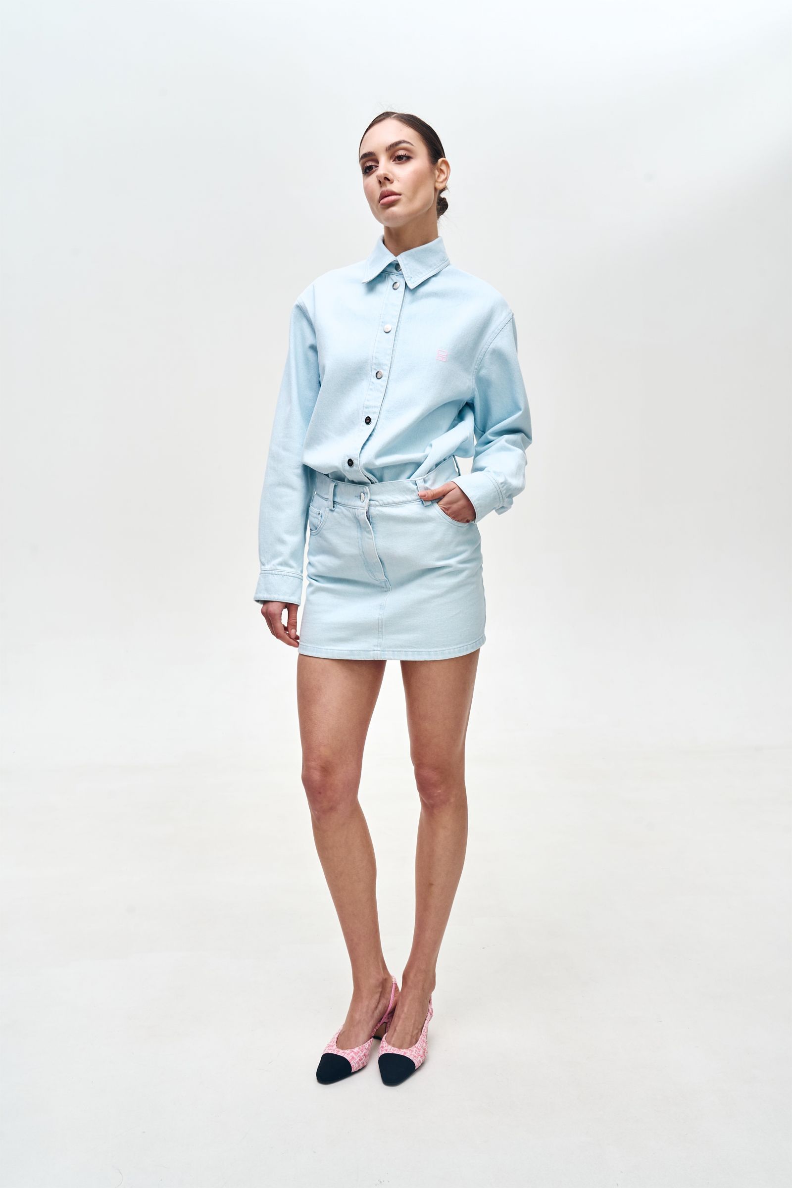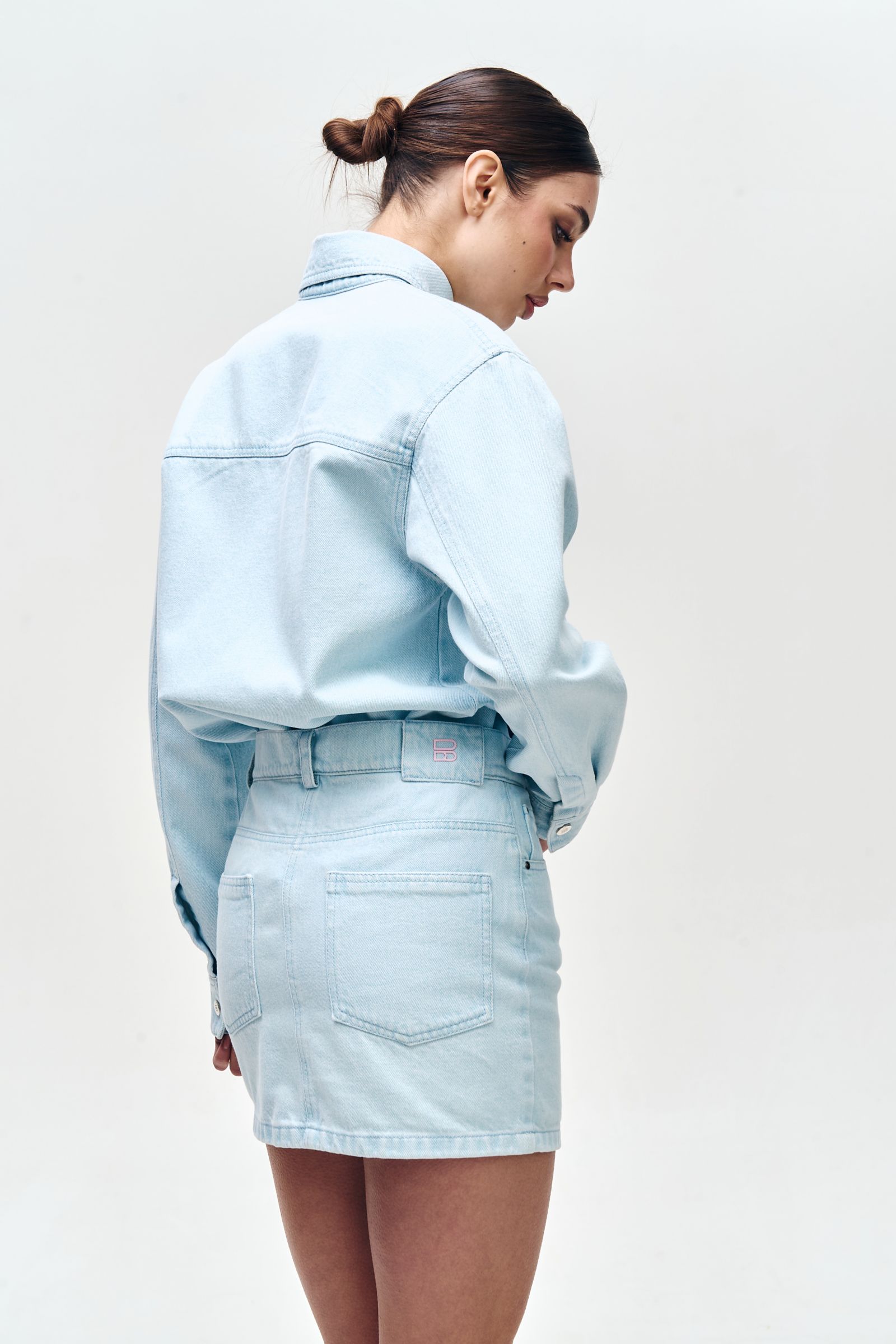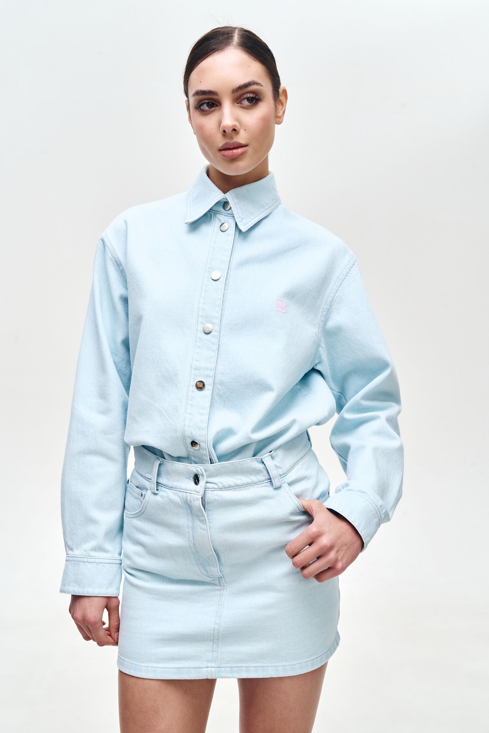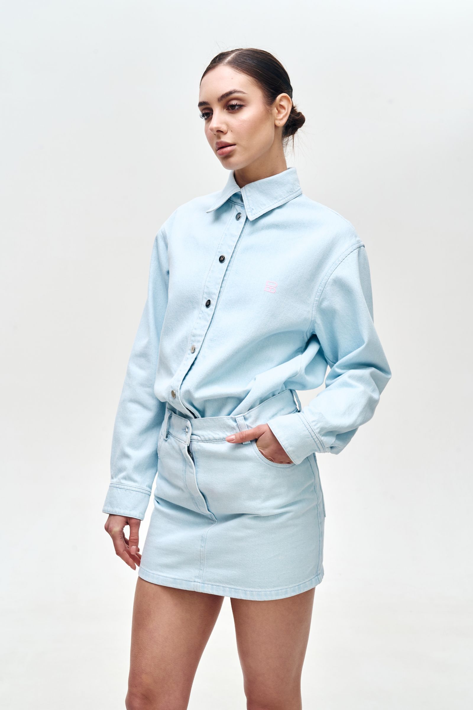 Лаконічна спідниця в ніжному блакитному відтінку - універсальна база для сучасного гардероба. Спідниця виконана у форматі міні, підкреслює силует і візуально подовжує ноги. Завдяки простому крою її легко комбінувати з різними верхами - від базових футболок до більш структурованих сорочок. Разом з сорочкою Avril створюють гармонійний total-look у трендовій гамі.