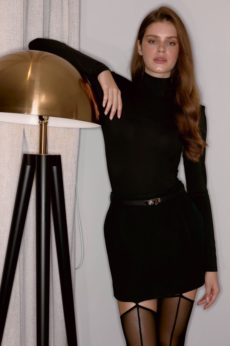 Міні-спідниця Diora - це втілення сучасної французької елегантності з акцентом на архітектурність ліній. Модель створена з високоякісної костюмної тканини з пласким, щільним плетінням, що бездоганно тримає форму й забезпечує чистоту силуету. Асиметричний низ, який додає динаміки та візуально подовжує ноги. Гладкий пояс без зайвої фурнітури, що підтримує мінімалістичний, витончений образ. Силует, що плавно облягає стегна, створюючи чітку, лаконічну лінію. Без видимих швів на лицьовій частині, що підкреслює естетику “чистого крою”. Ця спідниця ідеально поєднується з високими чоботами, класичними човниками або ботильйонами, дозволяючи створювати як вечірні, так і денні аутфіти в стилі сучасного люксу.