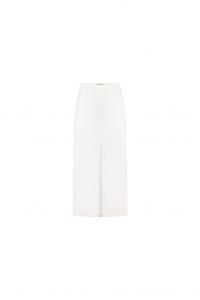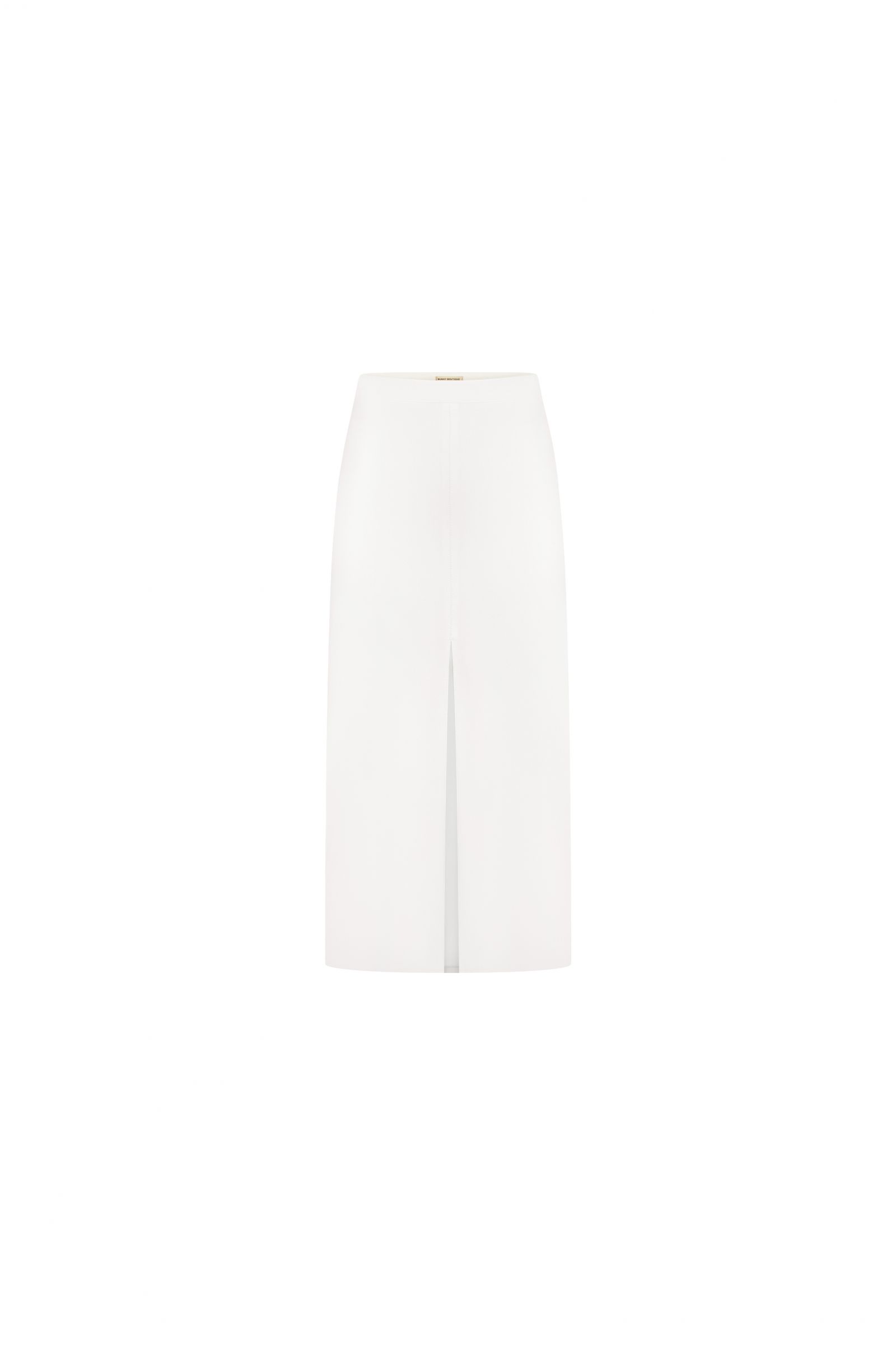 Лаконічна спідниця міді довжини з чистим силуетом та мінімалістичним дизайном. Модель має прямий крій, акуратно оформлену талію та легкий розріз спереду, який додає зручності під час руху та витонченого акценту образу. Спідниця добре тримає форму та пасує як до базових топів і сорочок, так і до жакетів. Ідеальний варіант для офісних образів, міських луків та літнього гардероба.