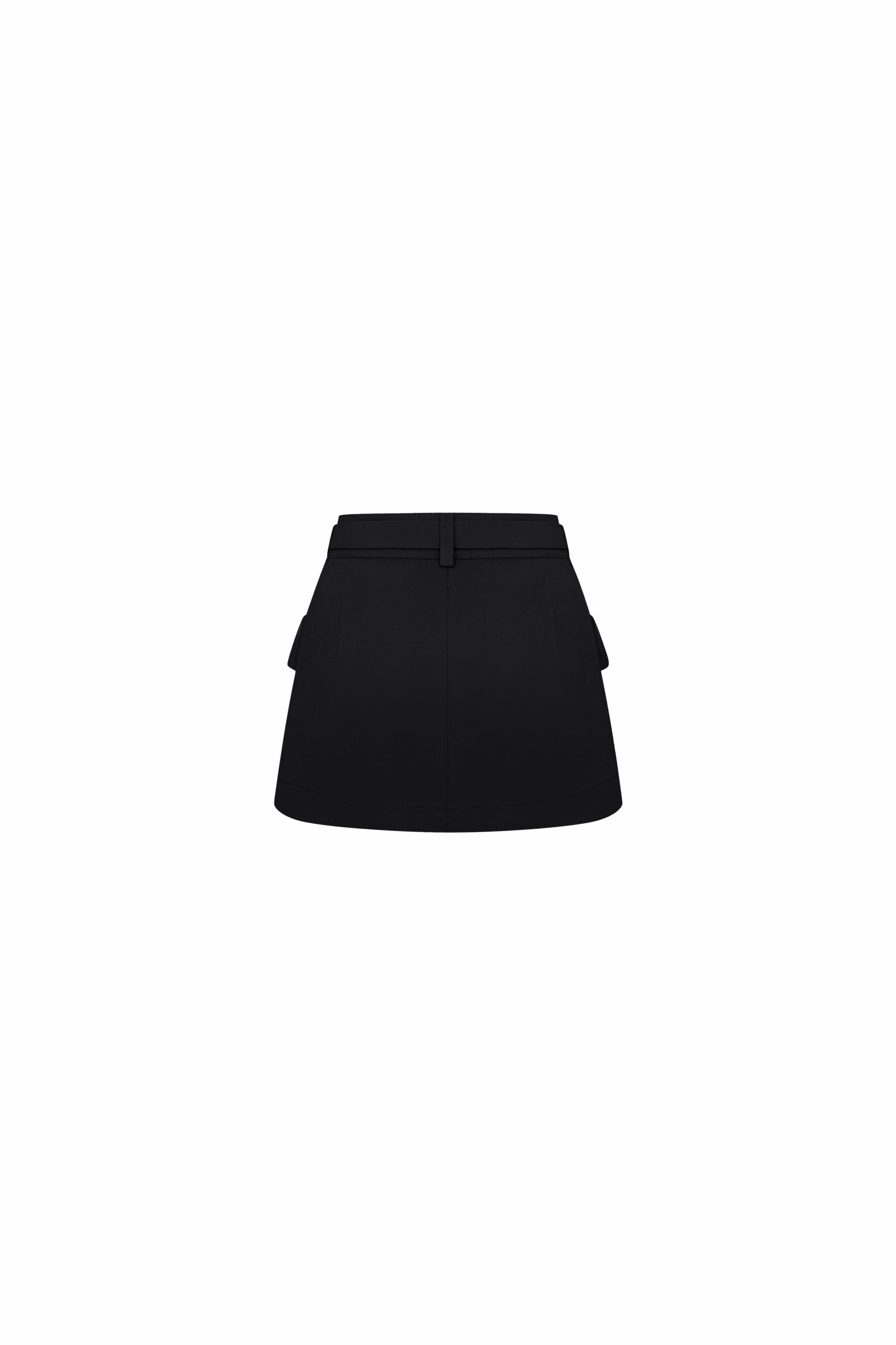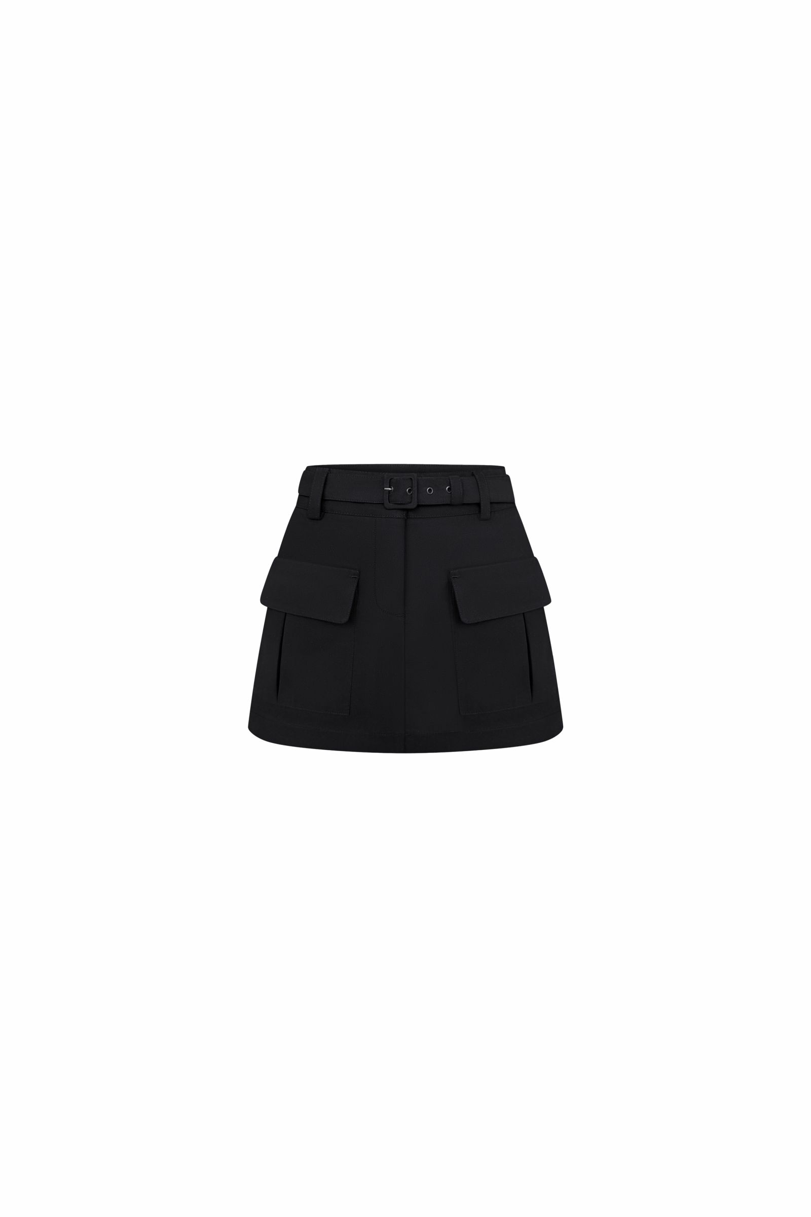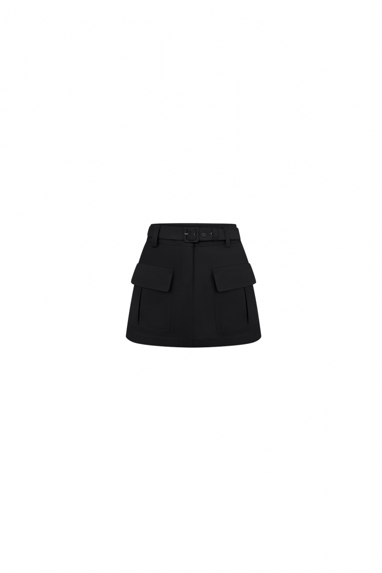 Спідниця Сафарі – втілення практичної елегантності в стилі сафарі. Модель виготовлена з міцної тканини в чорному кольорі, що додає універсальності та природності. Оригінальності додають дві великі накладні кишені з клапанами, які не лише прикрашають, а й виконують функціональну роль. Низька посадка підкреслює талію, а знімний ремінь із металевими деталями забезпечує ідеальний силует. Завдяки розрізам з боків спідниця виглядає динамічно та сучасно. Цей виріб стане чудовим доповненням як до повсякденного, так і до більш елегантного гардероба.