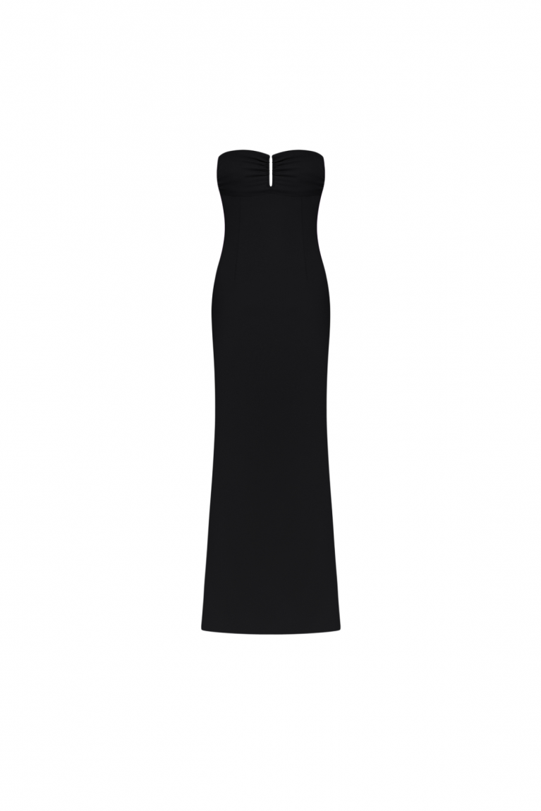 Вишукана новорічна сукня максі - ідеальний вибір для урочистого вечора. Ця сукня з відкритими плечима підкреслює граційність фігури та створює елегантний силует. Відкрите декольте з V-подібним гачком додає нотку спокусливості та стилю. Чорний колір і класичний крій забезпечують універсальність, дозволяючи поєднувати сукню з різними аксесуарами для створення завершеного образу. Ідеально підійде для тих, хто цінує розкіш і простоту водночас.