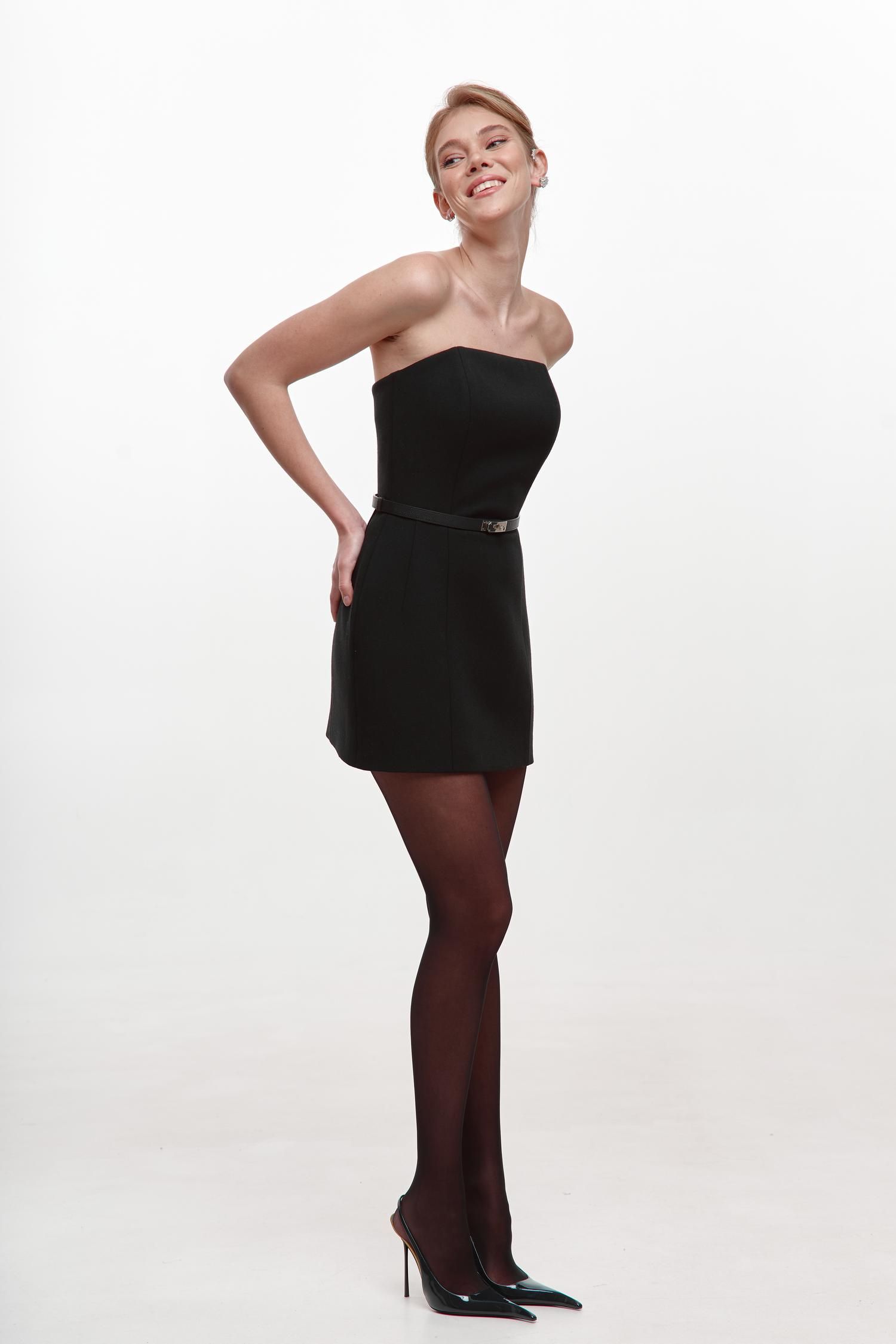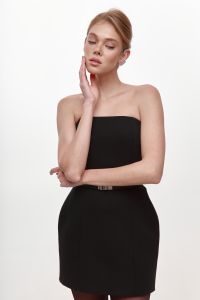 Лаконічна чорна сукня, яка підкреслює жіночний силует і виглядає бездоганно в будь-якій ситуації. Приталений крій із чітко окресленою талією та міні-довжина створюють витончений і водночас сміливий образ. Верх без бретелей акцентує лінію плечей і шиї, додаючи образу елегантності та сучасності. Ідеальний вибір для вечірніх виходів, подій або стильних міських образів. Легко поєднується з жакетами, підборами чи мінімалістичними аксесуарами.