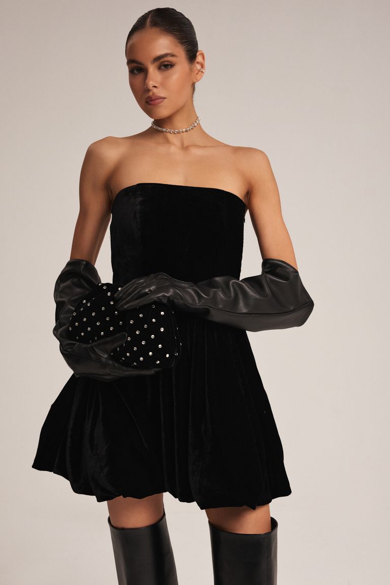 Вишукана міні-сукня стане вашим ідеальним вибором для святкового вечора, поєднуючи елегантність і сучасний стиль. Міні-довжина з акцентом на стрункі ноги та витончені лінії талії завдяки. Відкрите декольте зробить образ сміливим і привабливим, ідеально підкреслюючи зону плечей та ключиць. Сукня виконана з оксамиту, що додає розкішного блиску та м’якості. Лаконічний дизайн, який підходить як для урочистих заходів, так і для вечірок, створюючи неперевершений святковий настрій. Ця сукня – ваш ключ до неповторного образу, який запам’ятається назавжди!