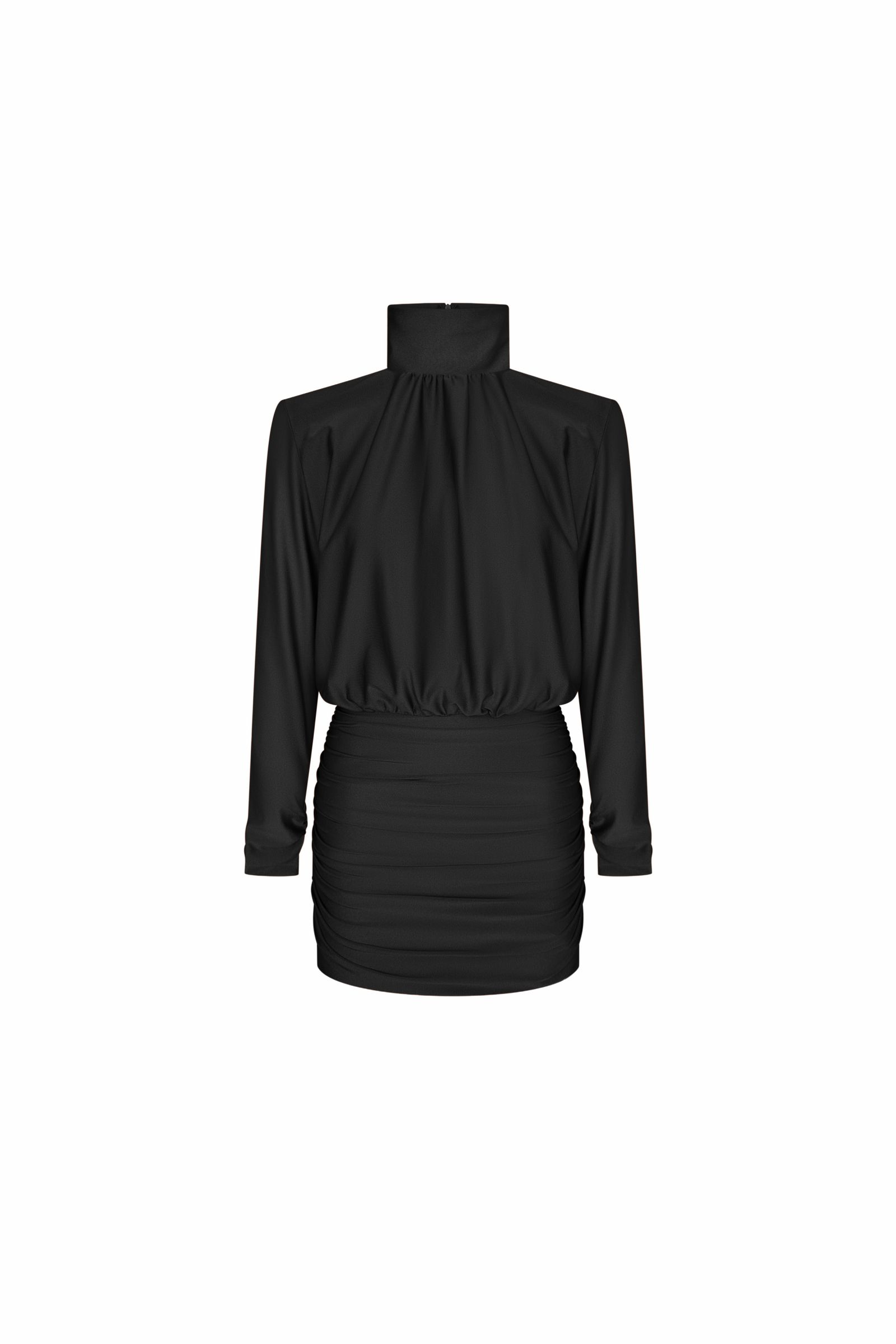 Сукня Sparkle створена спеціально для новорічних вечорів, коли хочеться сяяти з першого кроку. Модель виконана з гладкої, м’якої тканини з делікатним сатиновим відблиском, що красиво грає у світлі та підкреслює святкову атмосферу. Високий комір додає образу благородної стриманості, а довгі рукави створюють витончений силует, балансуючи сміливу довжину. Легка драпіровка в зоні талії та стегон формує м’які, жіночні лінії та візуально моделює фігуру. Завдяки цьому сукня виглядає одночасно мінімалістичною та дуже ефектною. Приталений кроєний низ підкреслює витонченість ніг, а компактна довжина додає динаміки та святкової легкості. М’які, чисті відтінки роблять образ універсальним для будь-якого взуття й аксесуарів - від металізованих босоніжок до акцентних прикрас. Ідеальний вибір для новорічної ночі, урочистої вечірки або будь-якого моменту, коли хочеться виглядати бездоганно.