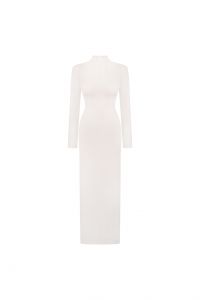 Елегантна облягаюча сукня в мінімалістичному стилі, що підкреслює природні лінії силуету та створює витончений, сучасний образ. Високий комір додає образу стриманої елегантності, а довгі рукави роблять сукню універсальним вибором для прохолодної погоди. Лаконічний дизайн без зайвих деталей дозволяє легко стилізувати її як для повсякденних виходів, так і для особливих подій. Світлий відтінок надає свіжості та підкреслює жіночність. Ідеально поєднується з грубими черевиками для контрастного міського образу або з класичними аксесуарами для більш елегантного стилю. Ця сукня - втілення сучасної простоти, комфорту та бездоганного смаку.