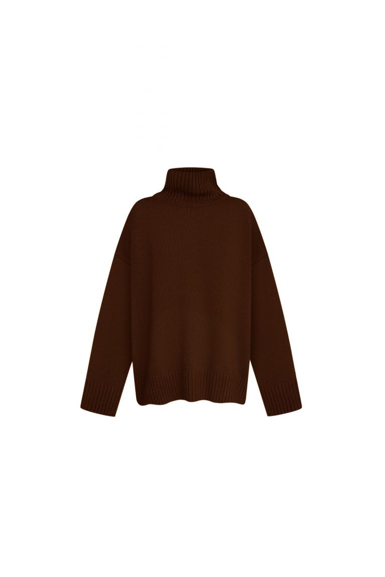 Cветр в насиченому шоколадному кольорі в універсальному розмірі - стильний і комфортний елемент гардероба, який поєднує в собі затишок та сучасний дизайн. Виконаний із м’якої в’язки, светр має високий комір-гольф, що додає образу елегантності та захищає від прохолоди. Об’ємні рукави надають модний акцент. Ідеальний вибір для прохолодної пори року, щоб виглядати стильно та відчувати комфорт.