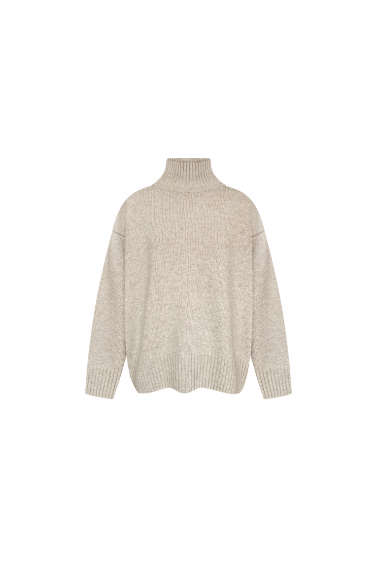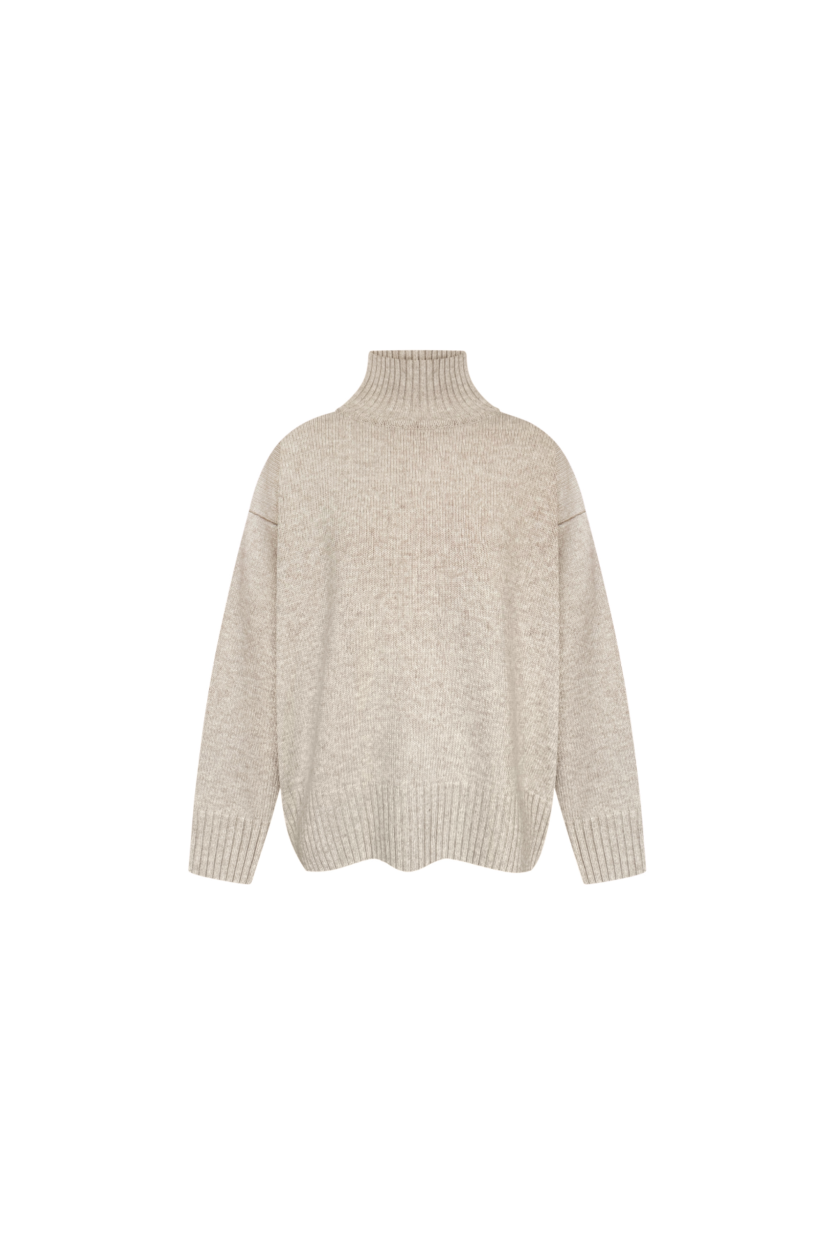 Cветр в бежевому кольорі в універсальному розмірі - стильний і комфортний елемент гардероба, який поєднує в собі затишок та сучасний дизайн. Виконаний із м’якої в’язки, светр має високий комір-гольф, що додає образу елегантності та захищає від прохолоди. Об’ємні рукави надають модний акцент. Ідеальний вибір для прохолодної пори року, щоб виглядати стильно та відчувати комфорт.