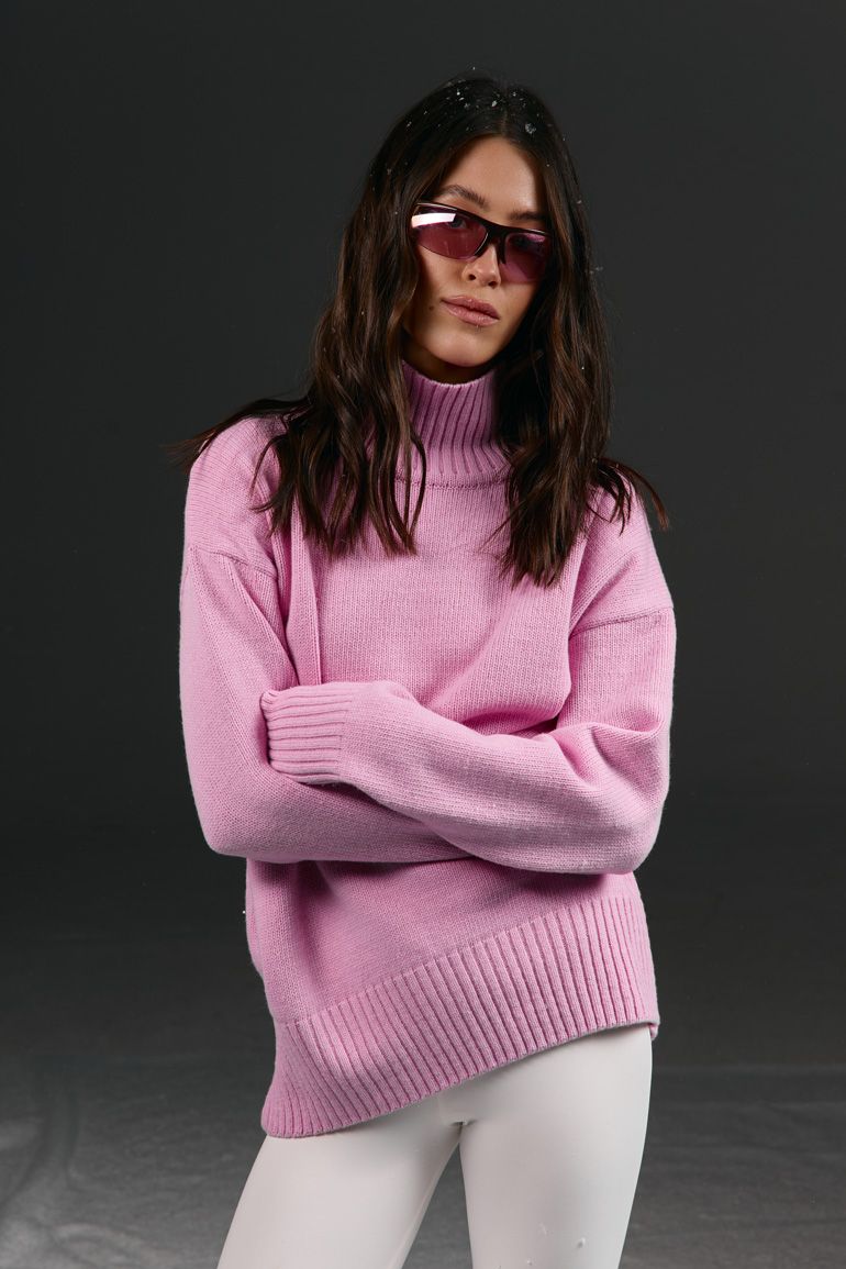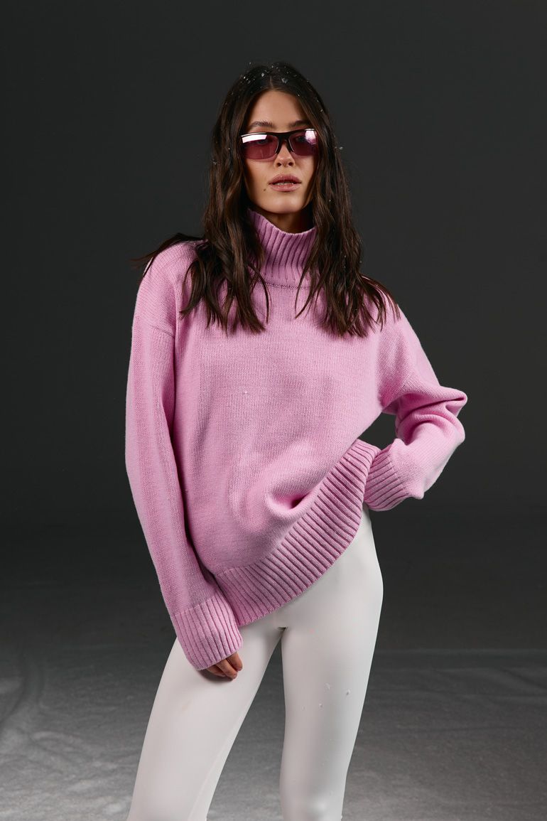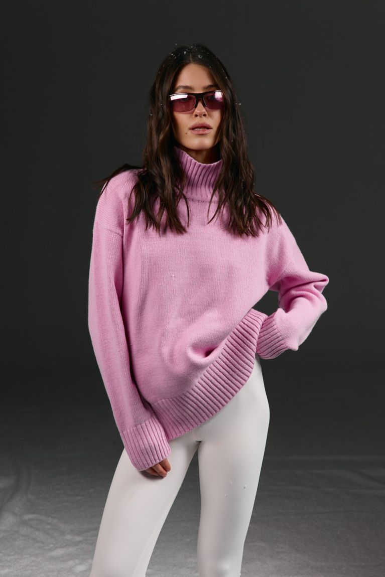 Cветр в рожевому кольорі в універсальному розмірі - стильний і комфортний елемент гардероба, який поєднує в собі затишок та сучасний дизайн. Виконаний із м’якої в’язки, светр має високий комір-гольф, що додає образу елегантності та захищає від прохолоди. Об’ємні рукави надають модний акцент. Ідеальний вибір для прохолодної пори року, щоб виглядати стильно та відчувати комфорт.