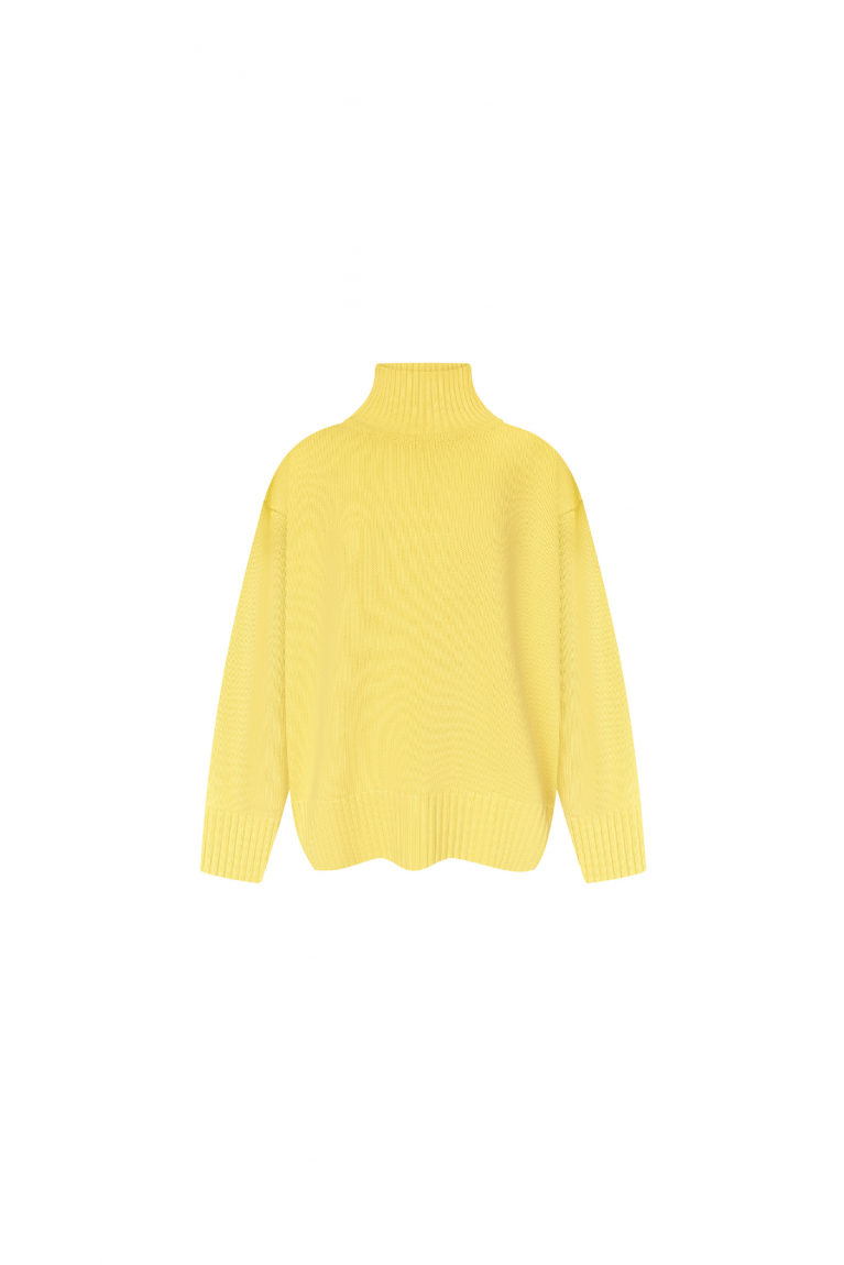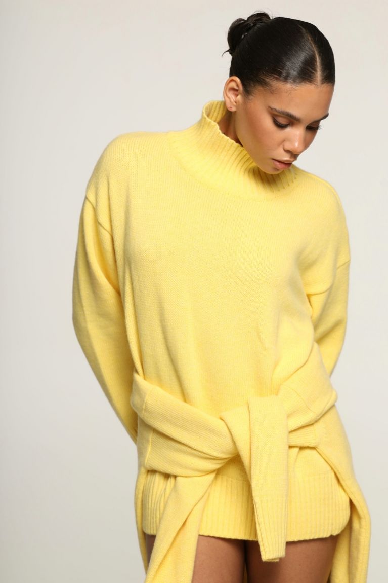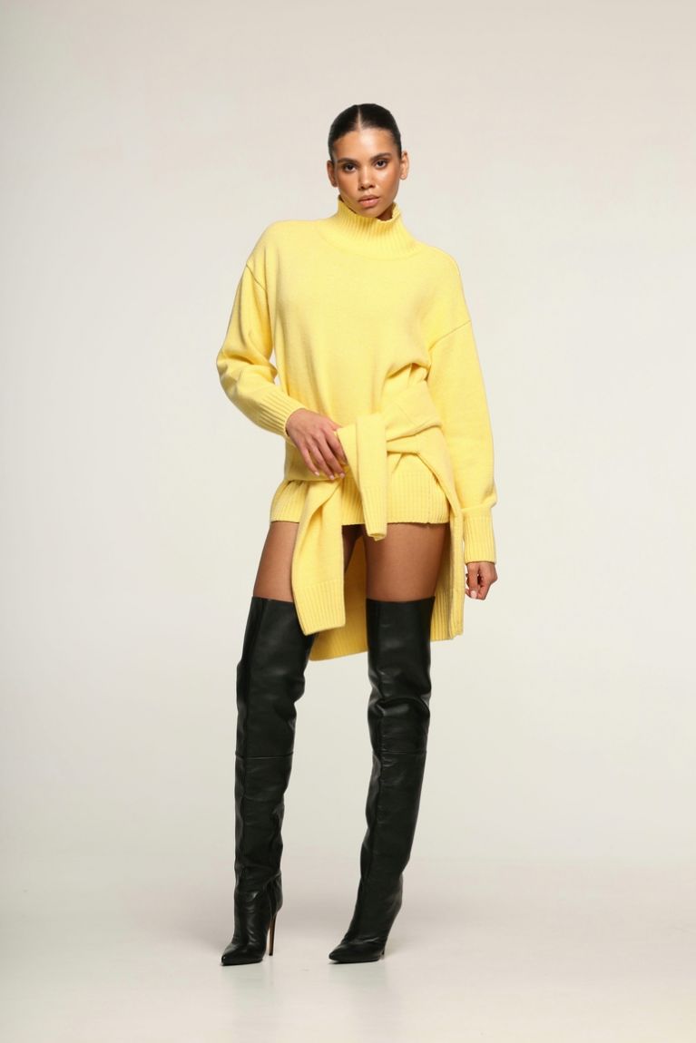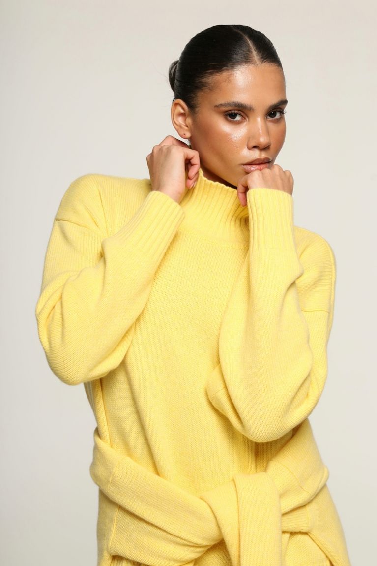 Подовжений светр жовтого кольору в універсальному розмірі— стильний і комфортний елемент гардероба, який поєднує в собі затишок та сучасний дизайн. Виконаний із м’якої в’язки, светр має високий комір-гольф, що додає образу елегантності та захищає від прохолоди. Об’ємні рукави надають модний акцент, а подовжений фасон дозволяє носити його як сукню або в комбінації з лосинами чи високими чоботами. Ідеальний вибір для прохолодної пори року, щоб виглядати стильно та відчувати комфорт.
