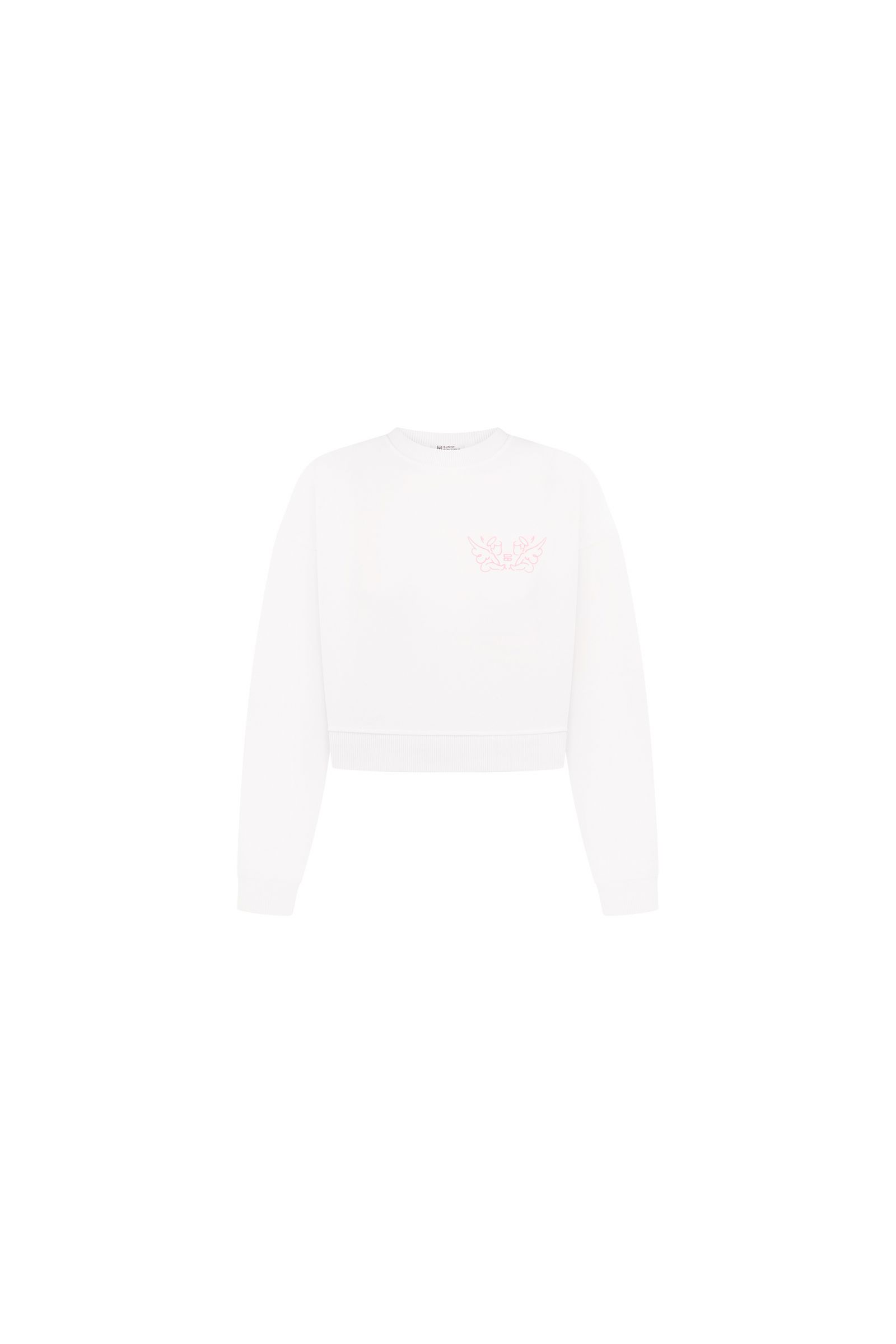 Стильний світшот молочного кольору - ідеальна база для щоденних образів. Модель має зручний вільний крій та виконана з м’якого, приємного до тіла матеріалу, що дарує комфорт упродовж усього дня. Лаконічний дизайн доповнений принтом, який робить модель особливою. Легко поєднується з джинсами, спортивними штанами або спідницями - для стильних casual-образів на кожен день.