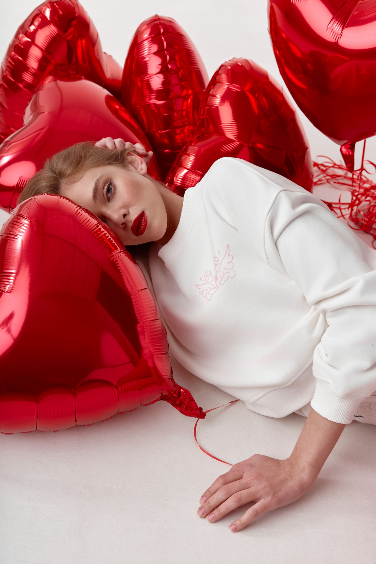 Стильний світшот молочного кольору - ідеальна база для щоденних образів. Модель має зручний вільний крій та виконана з м’якого, приємного до тіла матеріалу, що дарує комфорт упродовж усього дня. Лаконічний дизайн доповнений принтом, який робить модель особливою. Легко поєднується з джинсами, спортивними штанами або спідницями - для стильних casual-образів на кожен день.