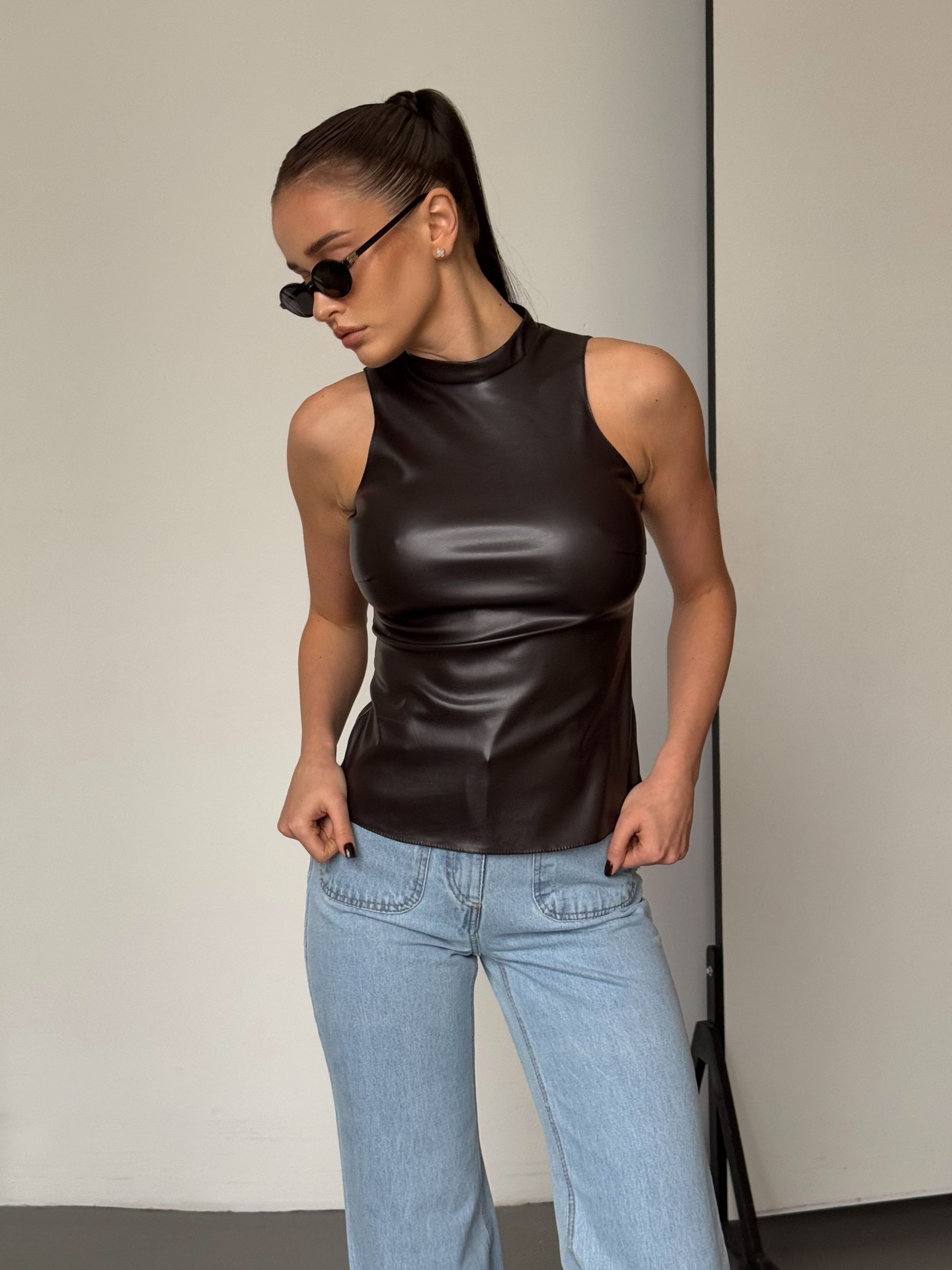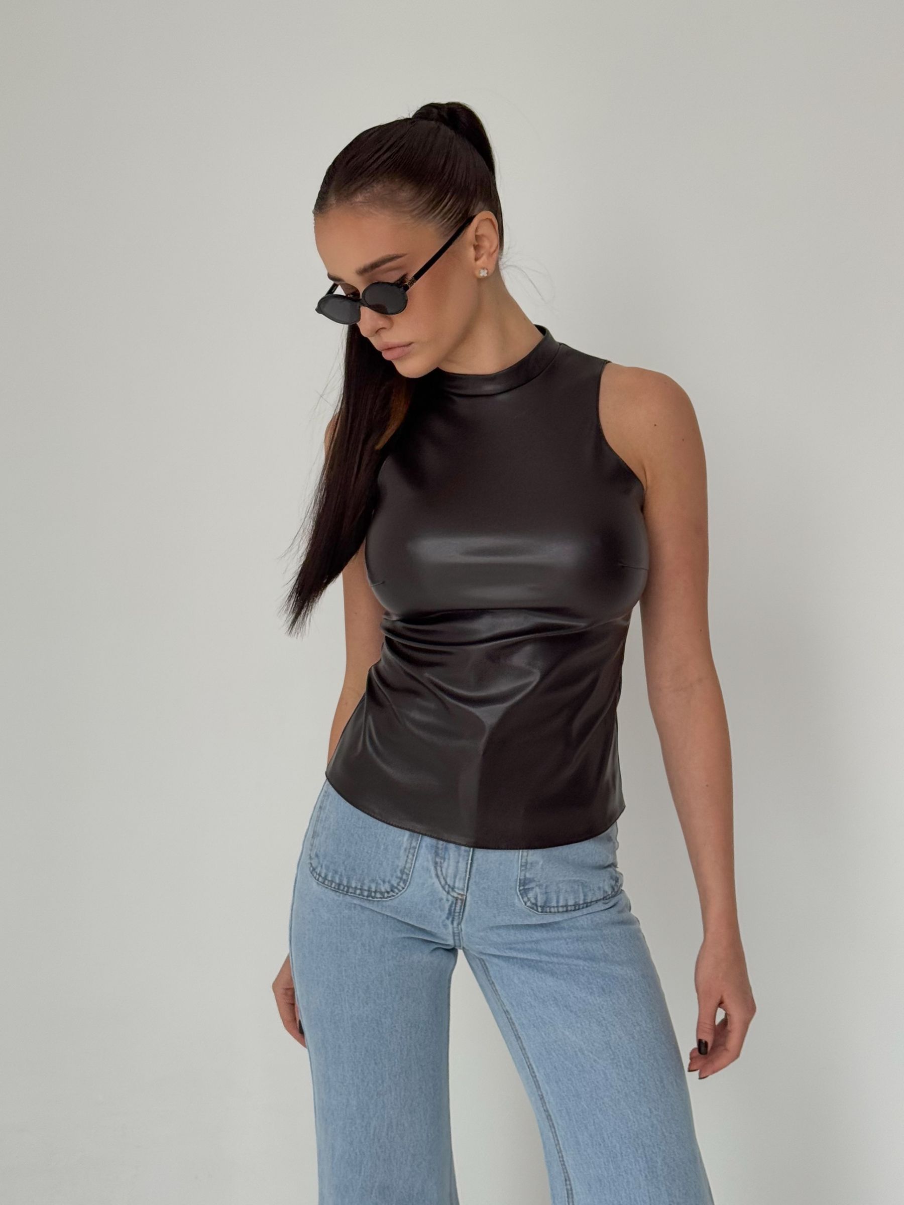 Лаконічний та водночас акцентний топ із м’якої еко-шкіри - ідеальна база для стильних образів. Матеріал з легким сатиновим блиском виглядає ефектно та тримає форму, залишаючись комфортним у носінні. Топ чудово поєднується з денімом, класичними брюками або спідницями, підходить як для повсякденних образів, так і для вечірніх виходів.