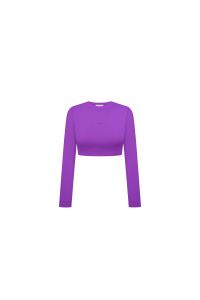 Стильний спортивний топ насиченого фіолетового кольору - ідеальний вибір для тренувань і повсякденних образів. Модель має укорочений крій, що підкреслює талію та створює сучасний силует, а довгі рукави додають комфорту й захисту під час занять. Виконаний із еластичного, приємного до тіла матеріалу, топ добре тягнеться, не сковує рухів і забезпечує оптимальну посадку.