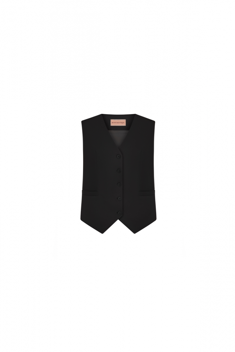 Ця жилетка є ідеальним елементом для створення шаруватого образу. Виконана з високоякісного матеріалу, вона має класичний V-подібний виріз і мінімалістичний дизайн, що дозволяє легко поєднувати її з сорочками, блузами або светрами. Жилетка додає образу глибини та вишуканості, створюючи сучасний вигляд для офісу або міських прогулянок.
