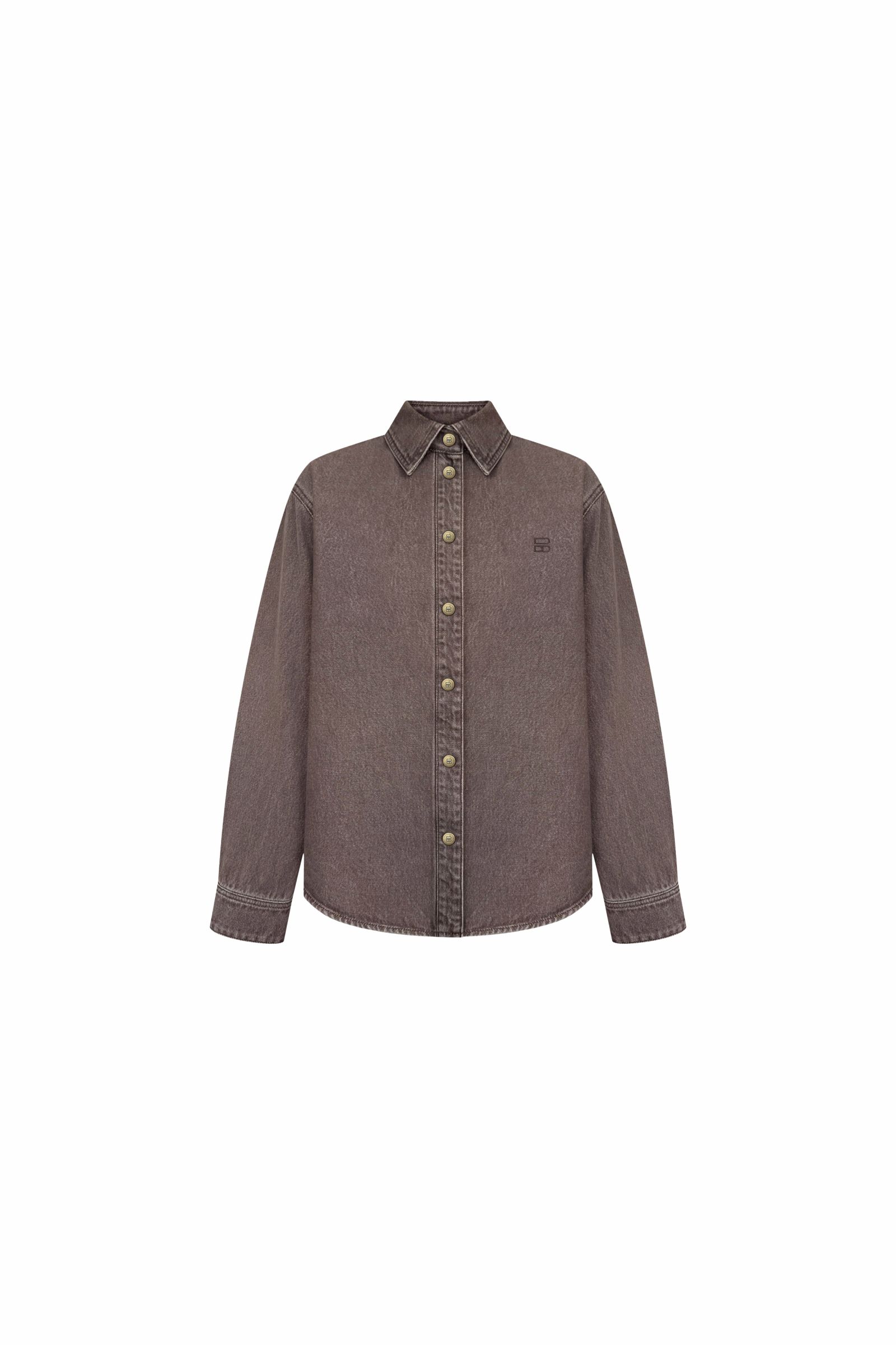 Стильна сорочка з щільного деніму стане універсальною основою гардероба. Модель виконана у трендовому коричневому відтінку, що додає образу характеру та сучасності. Класичний відкладний комір і застібка на ґудзики підкреслюють лаконічний дизайн. Сорочку можна носити як самостійний елемент або як легку куртку поверх футболки чи топа.