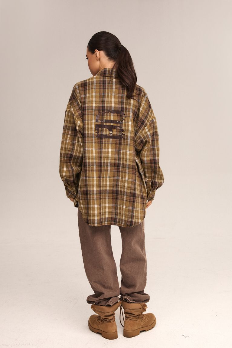 Стильна та універсальна сорочка в кольорі хакі - ідеальне доповнення до будь-якого гардероба. Виконана у модному оверсайз крої, вона забезпечує комфорт і свободу рухів. Модель застібається на кнопки з брендуванням та має на спині логотип бренду. Чудово поєднується як із джинсами, так і зі шкіряними брюками, додаючи образу нотку невимушеності й стилю. Рекомендується для створення casual образів на кожен день або стильних вечірніх луків.