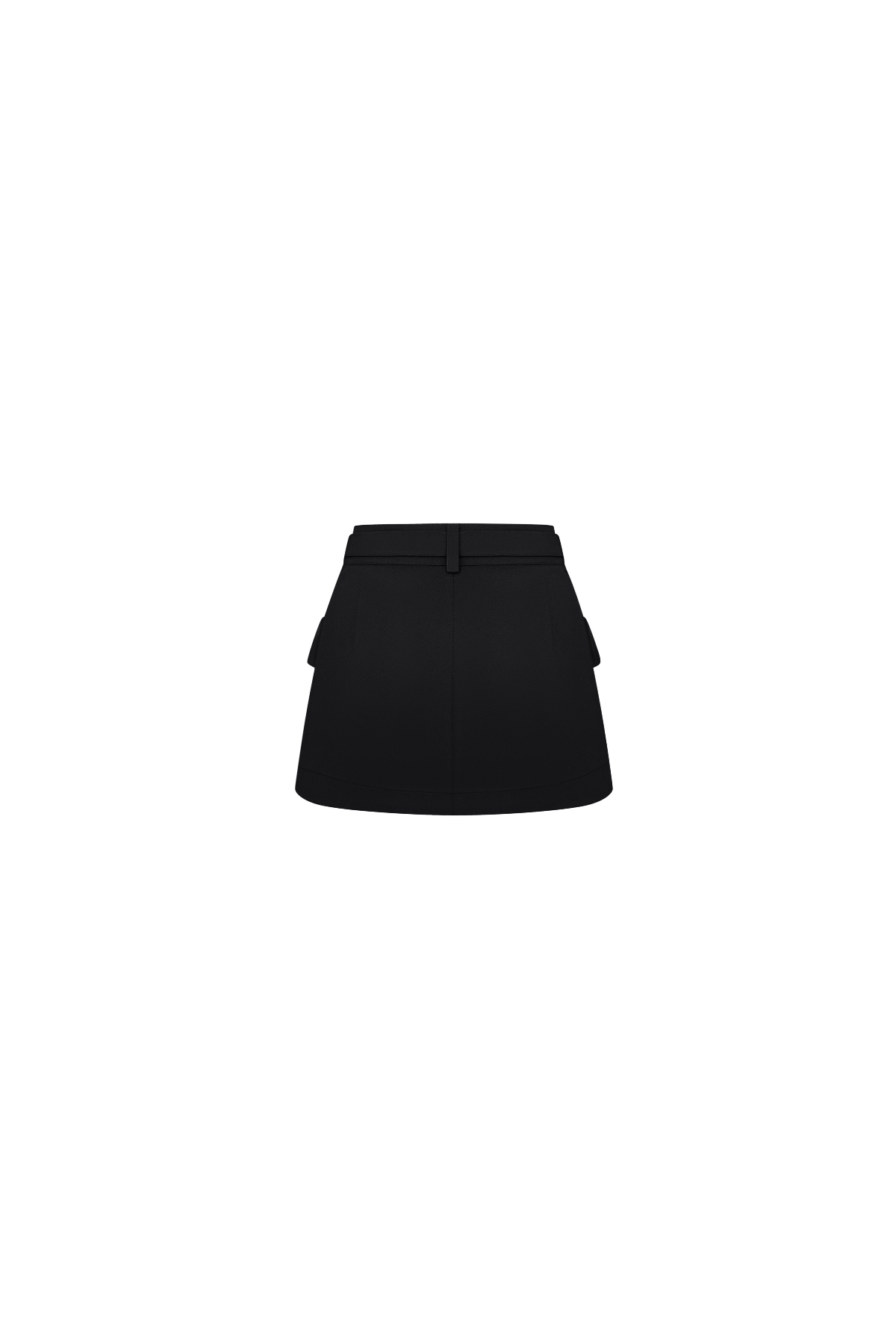 Спідниця Сафарі – втілення практичної елегантності в стилі сафарі. Модель виготовлена з міцної тканини в чорному кольорі, що додає універсальності та природності. Оригінальності додають дві великі накладні кишені з клапанами, які не лише прикрашають, а й виконують функціональну роль. Низька посадка підкреслює талію, а знімний ремінь із металевими деталями забезпечує ідеальний силует. Завдяки розрізам з боків спідниця виглядає динамічно та сучасно. Цей виріб стане чудовим доповненням як до повсякденного, так і до більш елегантного гардероба.