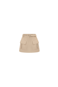 Спідниця Сафарі – втілення практичної елегантності в стилі сафарі. Модель виготовлена з міцної тканини у бежевому відтінку, що додає універсальності та природності. Оригінальності додають дві великі накладні кишені з клапанами, які не лише прикрашають, а й виконують функціональну роль. Низька посадка підкреслює талію, а знімний ремінь із металевими деталями забезпечує ідеальний силует. Завдяки розрізам з боків спідниця виглядає динамічно та сучасно. Цей виріб стане чудовим доповненням як до повсякденного, так і до більш елегантного гардероба.