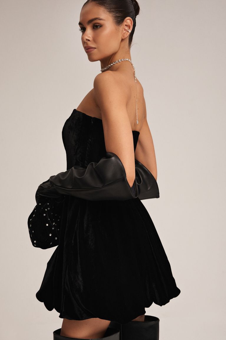 Вишукана міні-сукня стане вашим ідеальним вибором для святкового вечора, поєднуючи елегантність і сучасний стиль. Міні-довжина з акцентом на стрункі ноги та витончені лінії талії завдяки. Відкрите декольте зробить образ сміливим і привабливим, ідеально підкреслюючи зону плечей та ключиць. Сукня виконана з оксамиту, що додає розкішного блиску та м’якості. Лаконічний дизайн, який підходить як для урочистих заходів, так і для вечірок, створюючи неперевершений святковий настрій. Ця сукня – ваш ключ до неповторного образу, який запам’ятається назавжди!