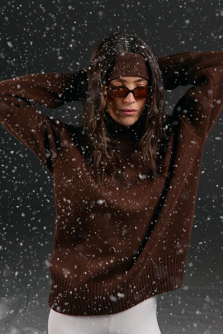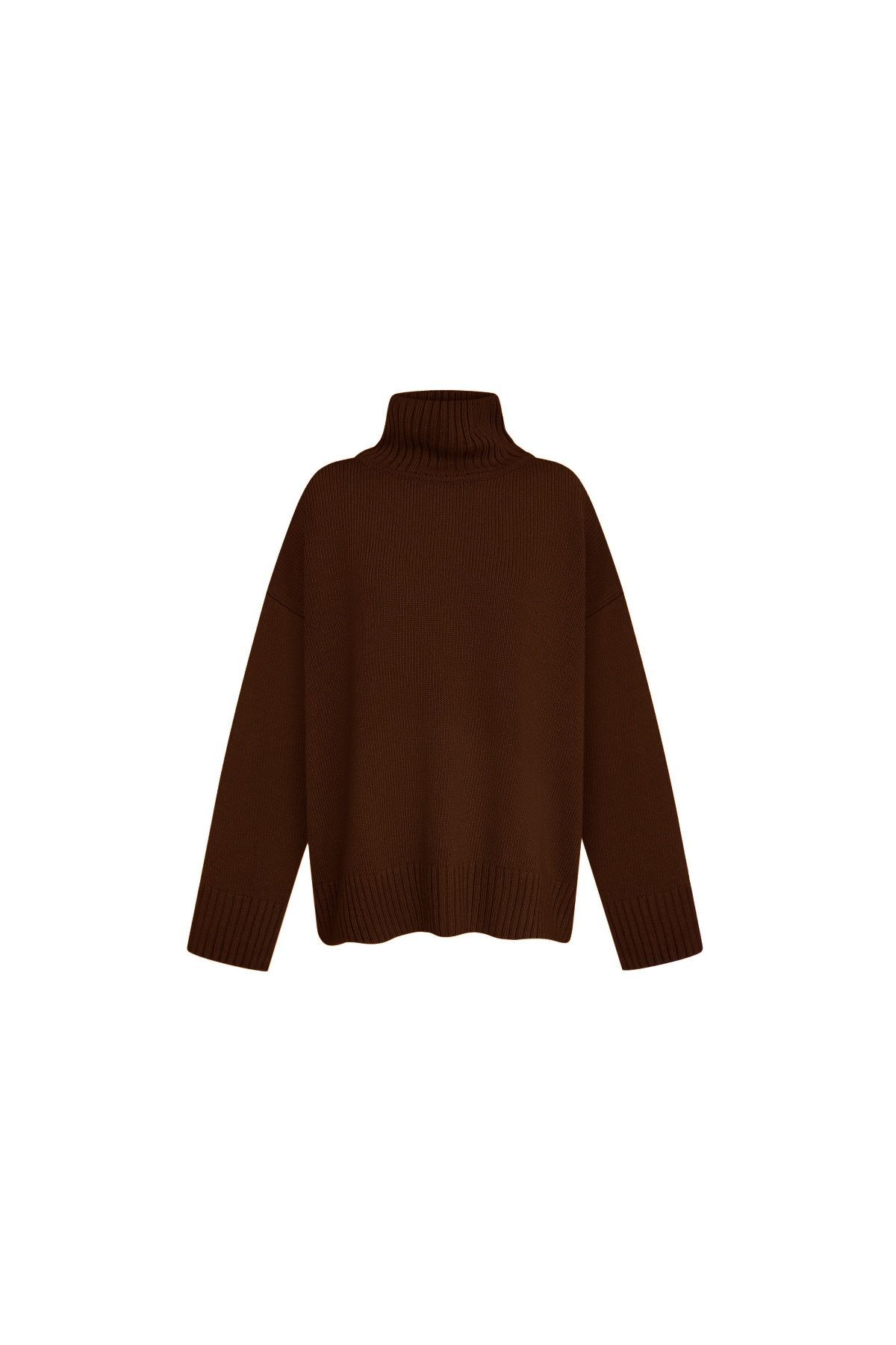 Cветр в насиченому шоколадному кольорі в універсальному розмірі - стильний і комфортний елемент гардероба, який поєднує в собі затишок та сучасний дизайн. Виконаний із м’якої в’язки, светр має високий комір-гольф, що додає образу елегантності та захищає від прохолоди. Об’ємні рукави надають модний акцент. Ідеальний вибір для прохолодної пори року, щоб виглядати стильно та відчувати комфорт.
